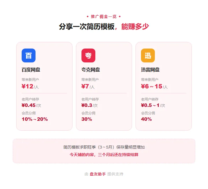 每一次有人打开你的链接、保存了里面的简历模板,都在帮你结算,