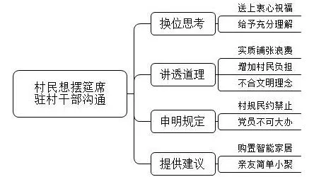 第二,说透道理,讲明弊端。我会明确告知丁某大摆筵席实质上是一种铺张浪费的行为,而且长此以往,很多村民碍于面子会再次回请或者也在乔迁之时大摆筵席,无形中给一些条件普通的村民带来了很大的经济压力,加重村民的负担,总之是不符合“乡风文明”这一新农村建设理念的。