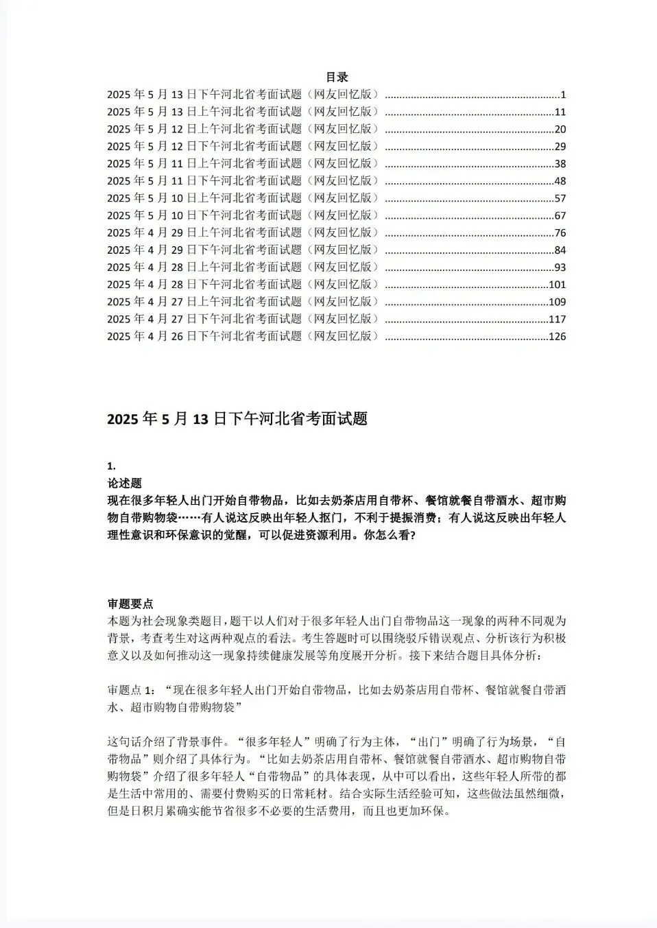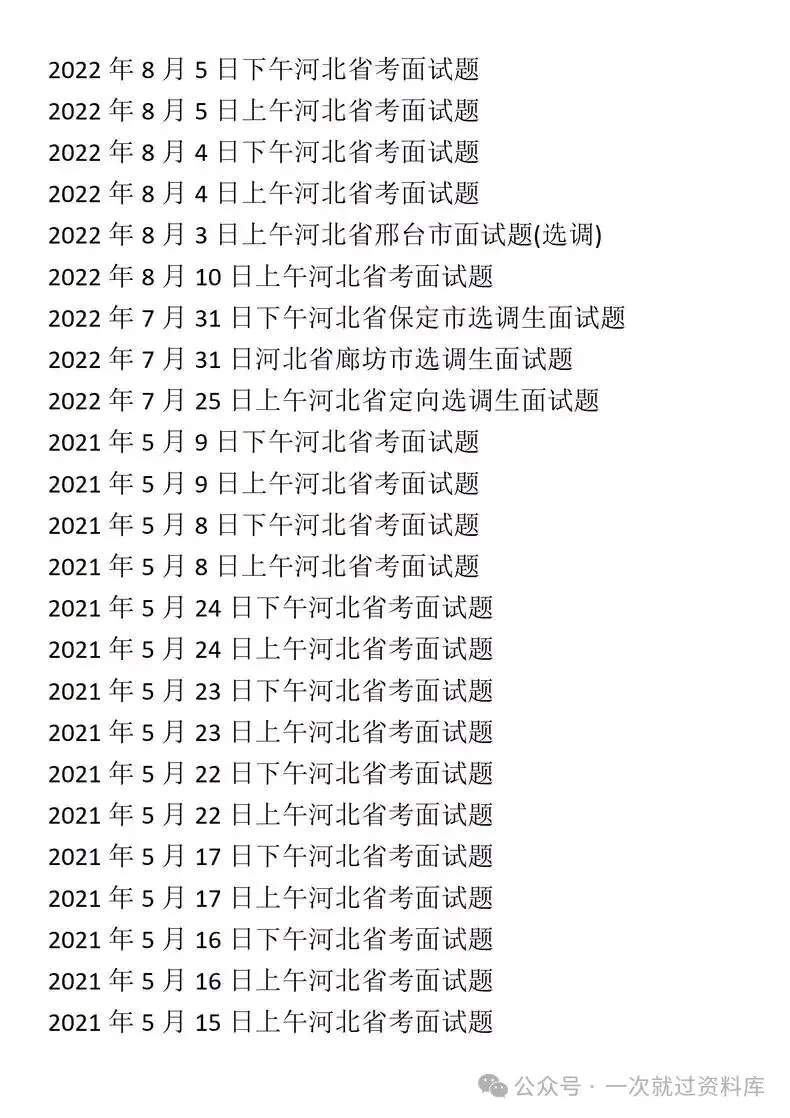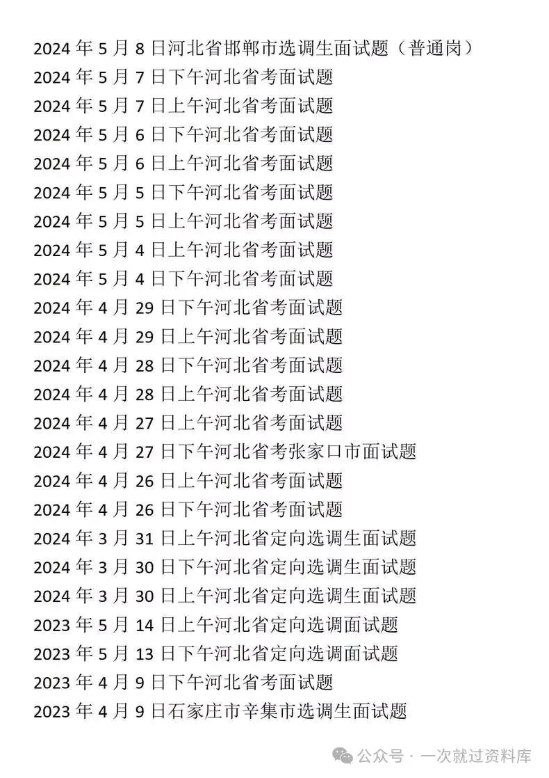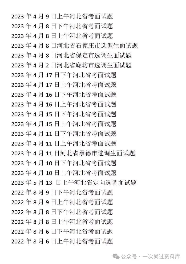 河北省考公务员面试真题+解析具体年份目录详见图片,图片中没有的就没有不仅仅只是简单的参考答案哦!而是从审题重点出发,到思维导图,再到最后的参考答案,都有详尽的解析,让你养成良好的面试思维体系!