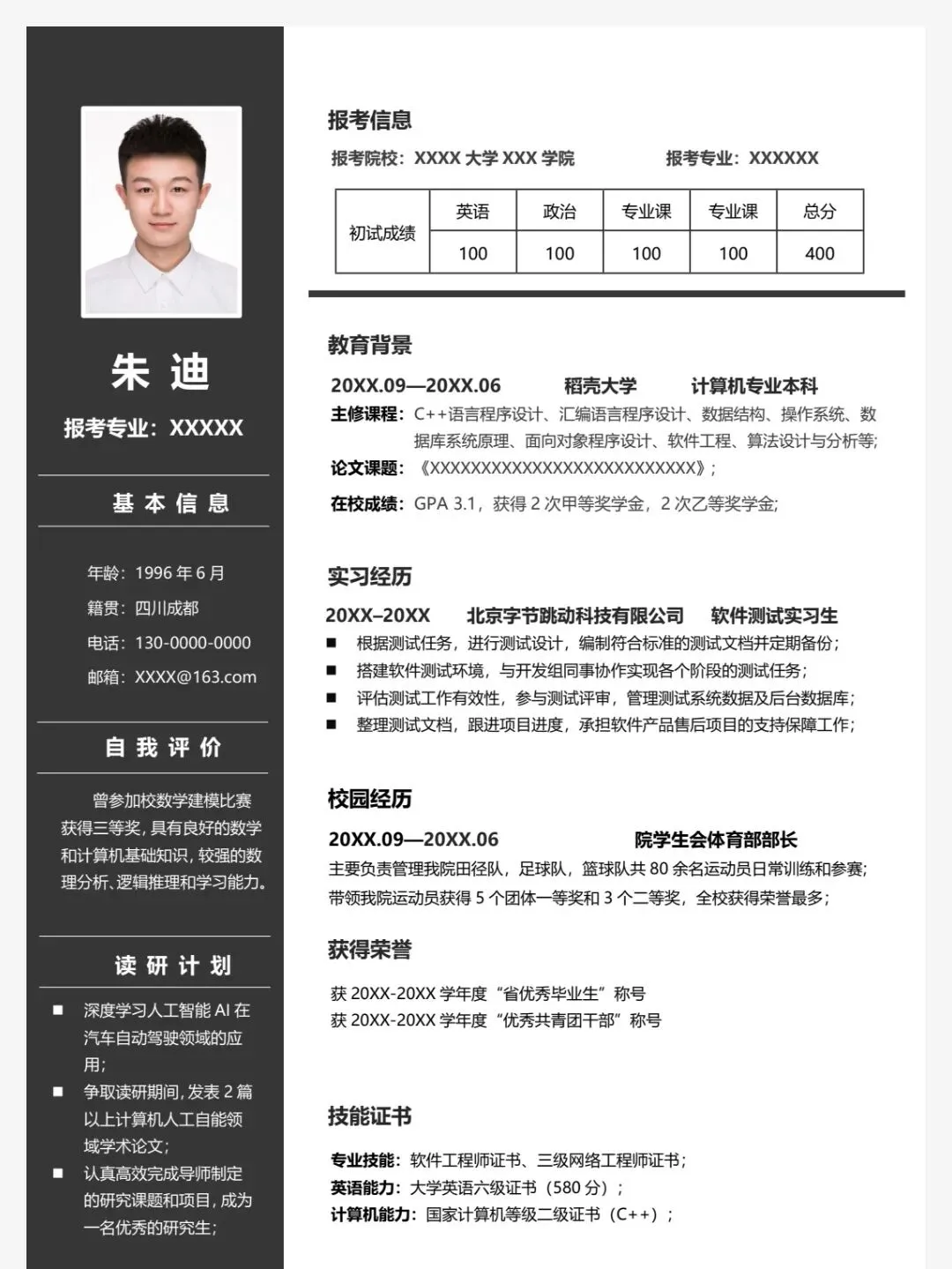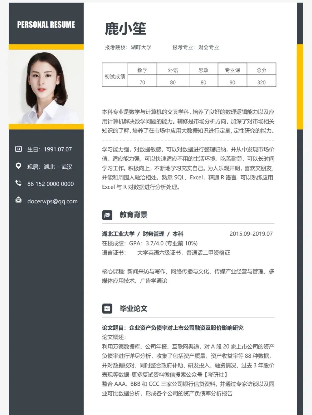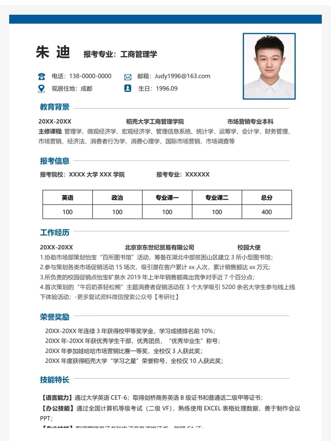 今天分享的是124套考研复试个人简历模板,均为word格式,下载后手机电脑均可编辑修改,手机编辑需要下载手机版wps