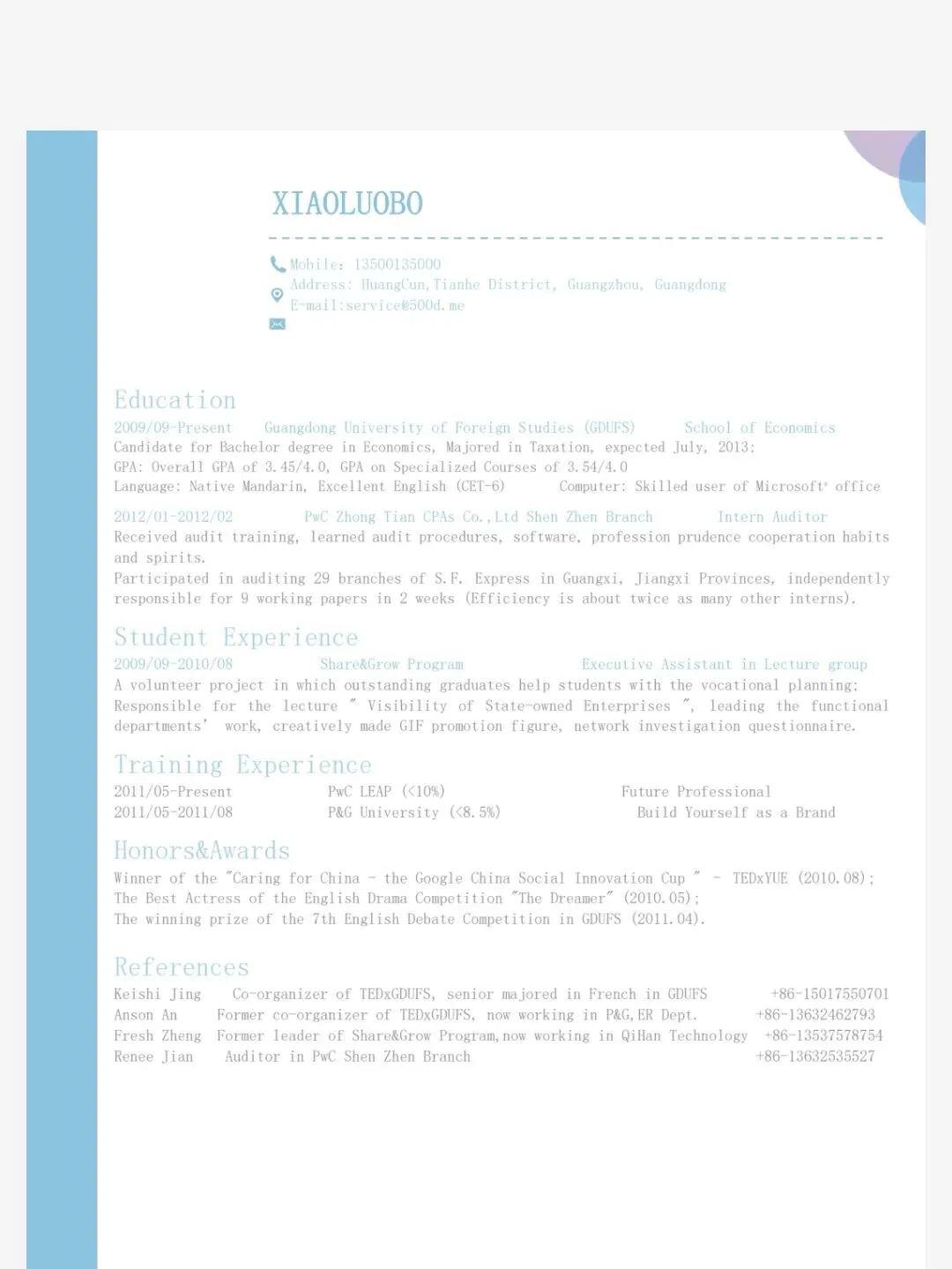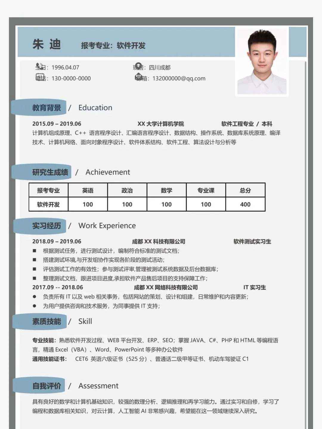 个人简历模板(word电子版可编辑)免费保存 免费下载