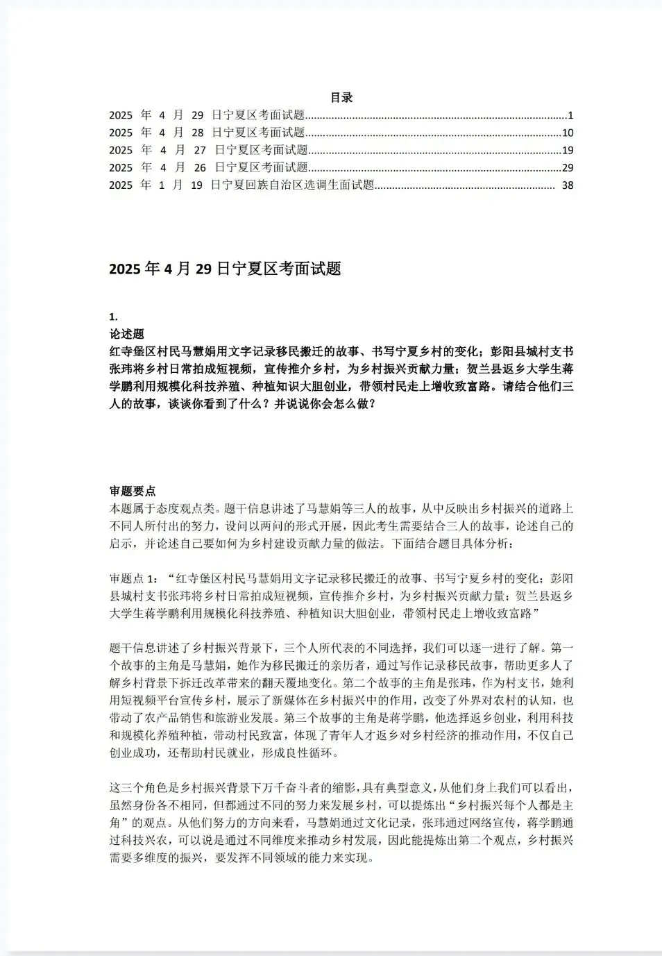 宁夏省考公务员面试真题+解析具体年份目录详见图片,图片中没有的就没有不仅仅只是简单的参考答案哦!而是从审题重点出发,到思维导图,再到最后的参考答案,都有详尽的解析,让你养成良好的面试思维体系!
