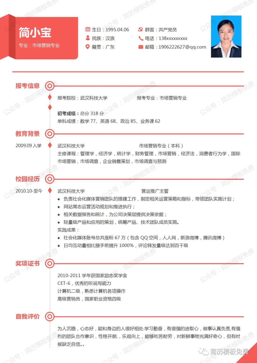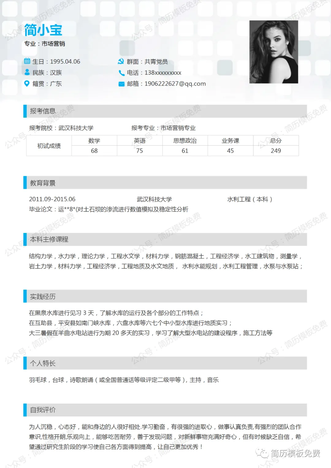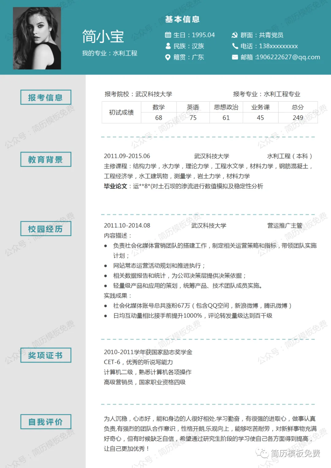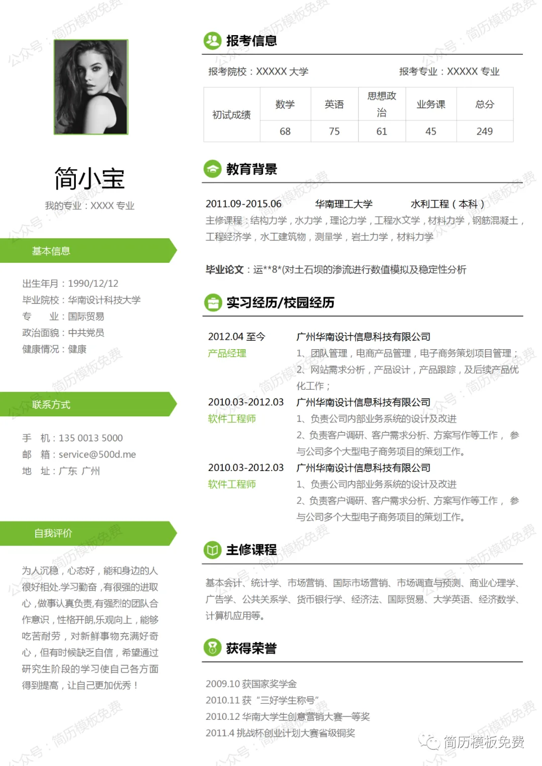 毕业季福利,关注公众号【简历模板免费】