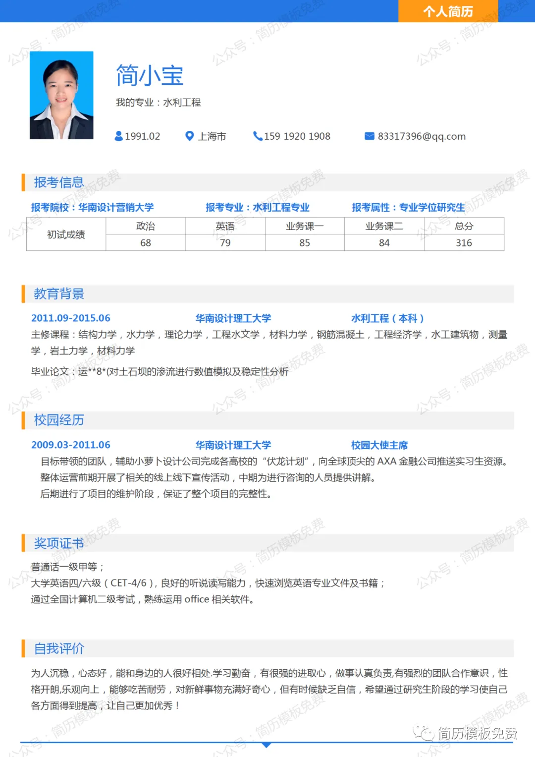 简历模板免费文件