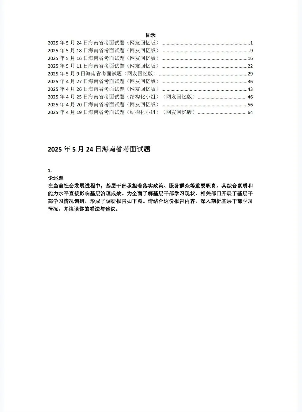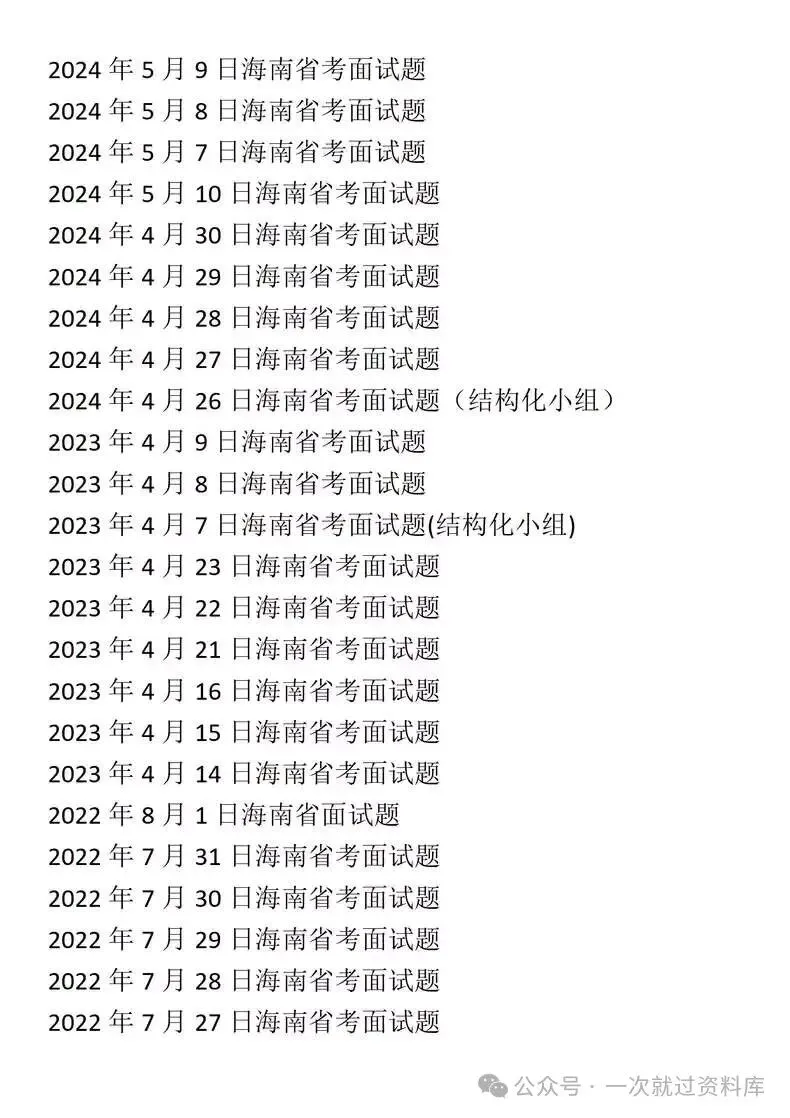 海南省考公务员面试真题+解析具体年份目录详见图片,图片中没有的就没有不仅仅只是简单的参考答案哦!而是从审题重点出发,到思维导图,再到最后的参考答案,都有详尽的解析,让你养成良好的面试思维体系!