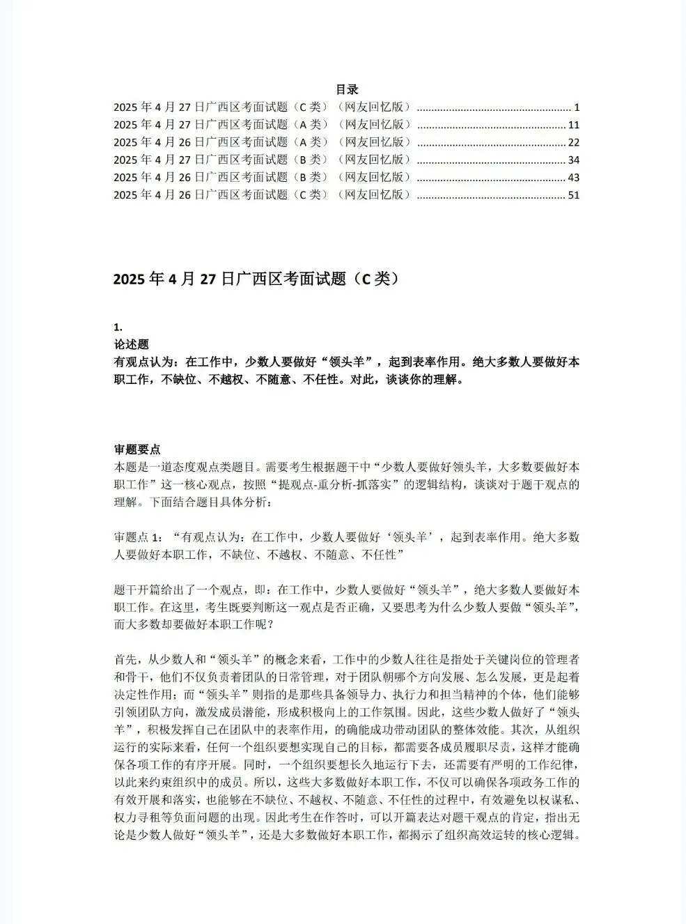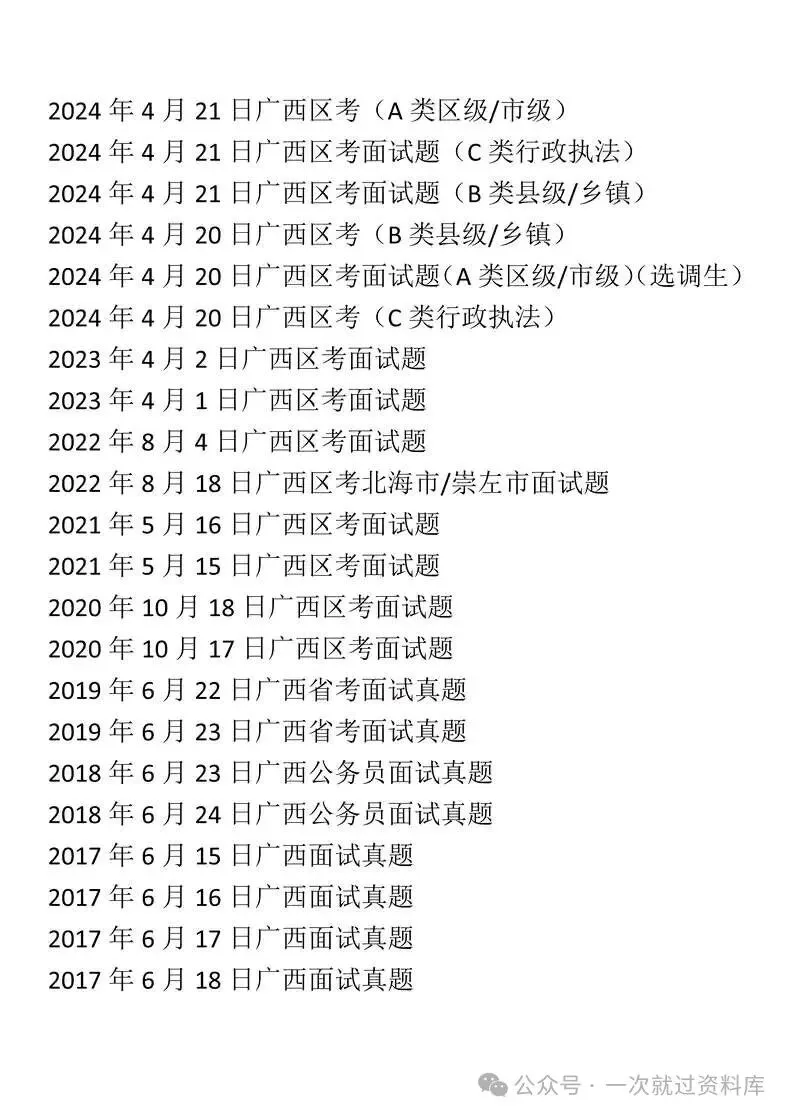 广西省考公务员面试真题+解析具体年份目录详见图片,图片中没有的就没有不仅仅只是简单的参考答案哦!而是从审题重点出发,到思维导图,再到最后的参考答案,都有详尽的解析,让你养成良好的面试思维体系!
