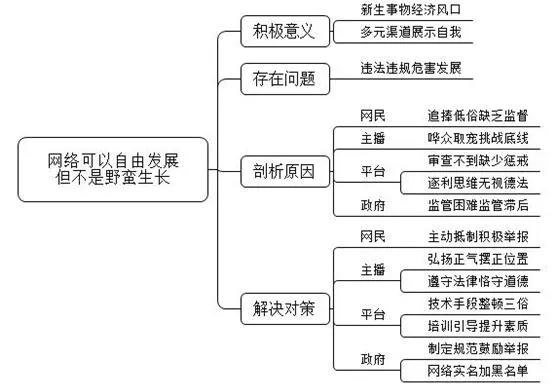 对人民日报的这句话,我十分认同。网络可以自由发展,但不是"野蛮生长",自媒体是应网络发展而衍生的新兴平台。网络直播更给了平民大众发声、表现自我的渠道,带动新的就业和消费方式,成为经济新“风口”,因此要鼓励自媒体良性发展。然而,自媒体传播政治有害信息,发布淫秽色情、暴力、侵权抄袭等内容,这些都在破坏着网络直播和自媒体的健康成长。