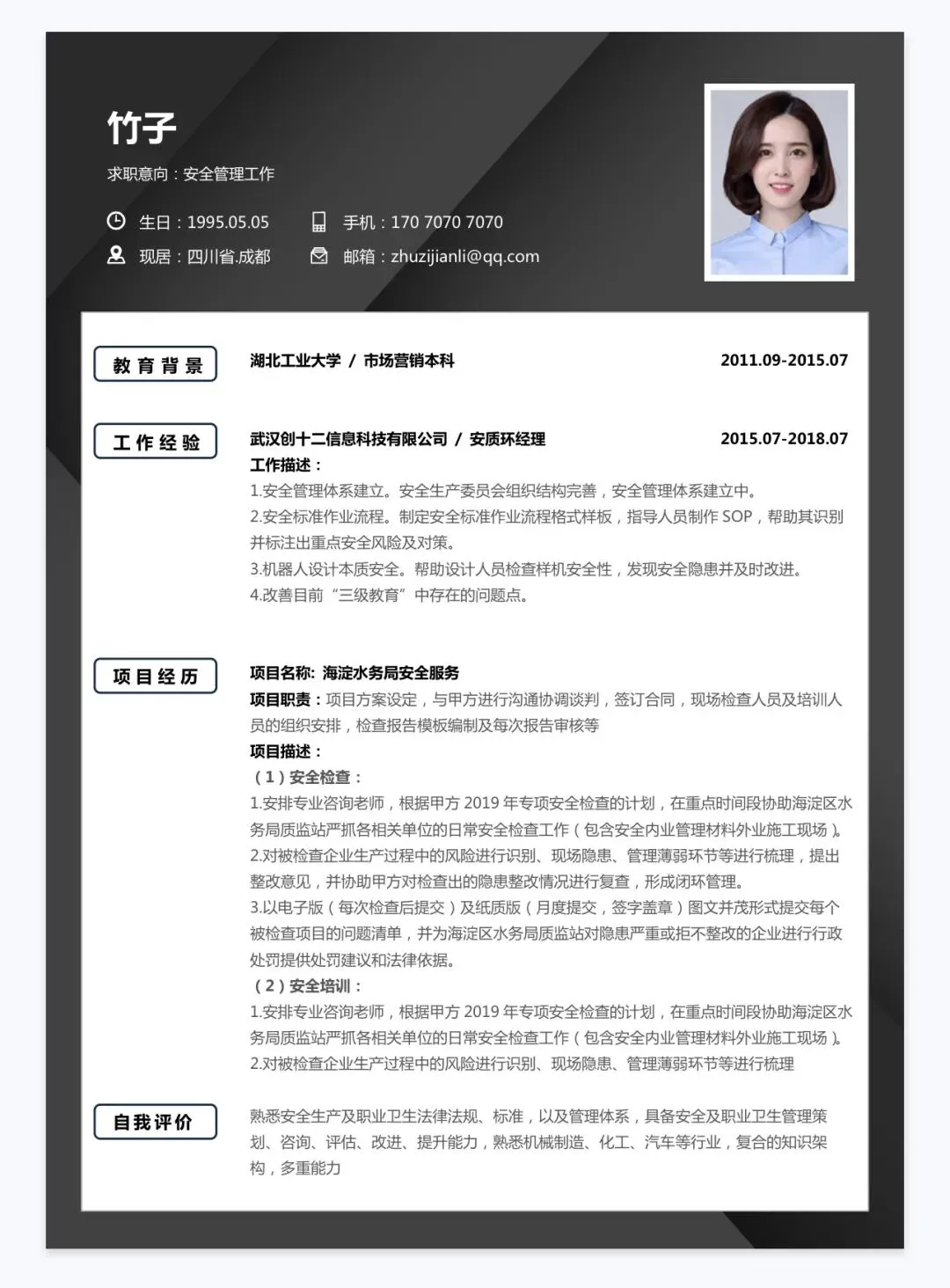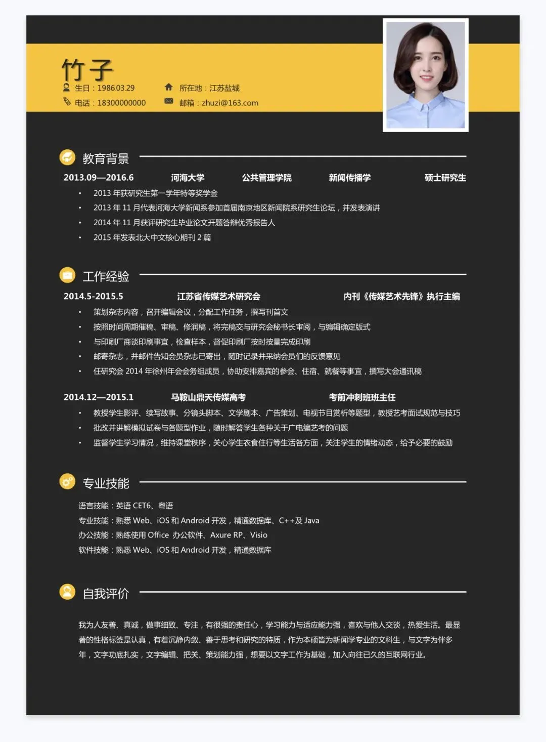 本文内容分享【简历模板】
