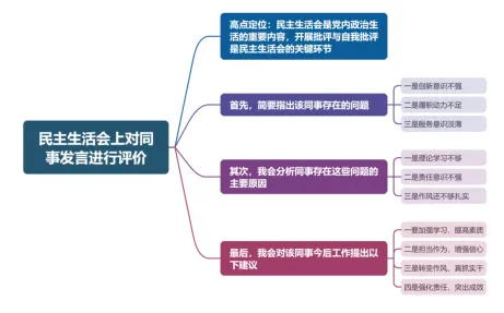 单位民主生活会上,开展批评和自我批评时,有同事说道:“一年忙到头,工作重复做,自己没有获得感,没有提升,业绩没取得闪光点,工作没有实质性进展,工作成果最终只体现在年终总结上的数字增减。”假如你当时在场,请你对他的发言进行评价?此题题干和选项一目了然,破题主要是评价,属于典型的综合分析能力测评题目。首先要了解评价的答题思路,即表态-分析-措施,其中分析是作答核心,切记不要只谈对策建议;其次,抓住破题的关键词句,即题干中“自己没有获得感,没有提升,业绩没取得闪光点,工作没有实质性进展,工作成果最终只体现在年终总结上的数字增减”,要围绕关键词句展开分析;最后要抓住情景,是在民主生活会上开展批评和自我批评,要突出批评性,给出实质性建议。