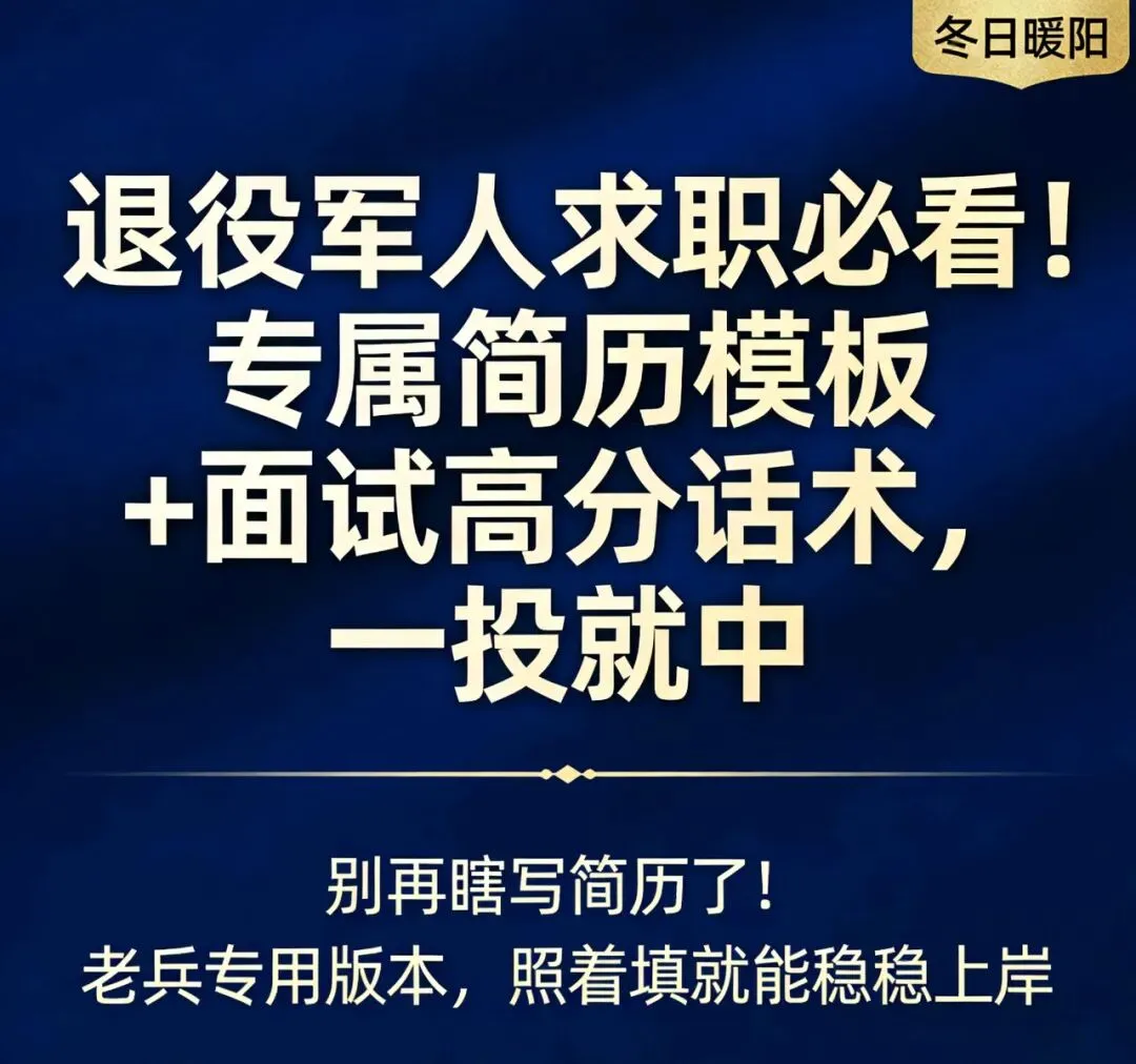 退役军人求职必看!专属简历模板+面试高分话术,一投就中.