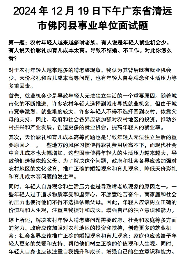 2026广东事业编统考答案