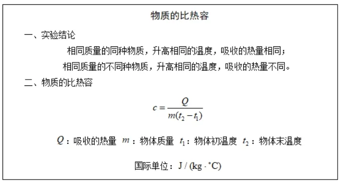 学生根据吸热、放热公式得出结论:物质吸热或放热的多少和物质的种类、质量以及温度的变化有关。此时教师顺势指出:如果用 表示温度变化,那么可不可以用一个公式表示物质吸热或放热的多少?