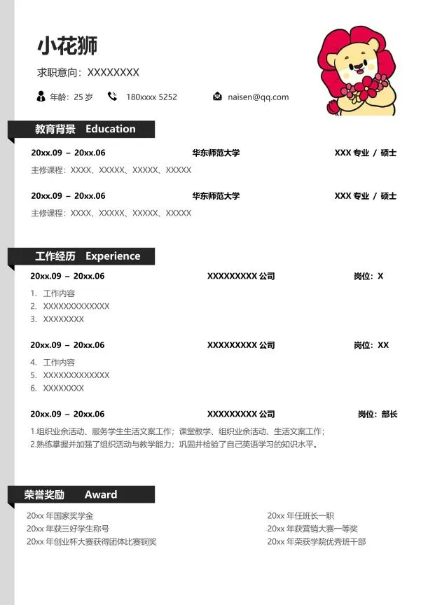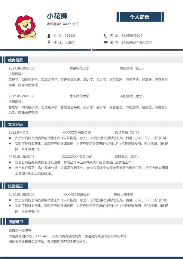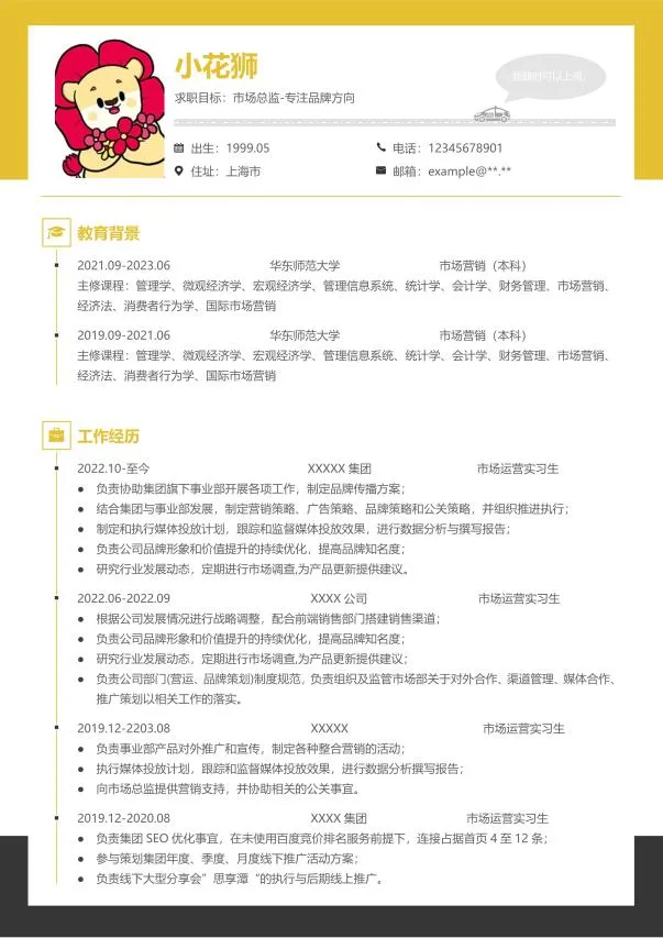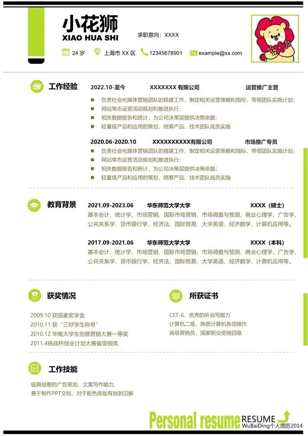以上就是本期简历分享的全部内容啦~
