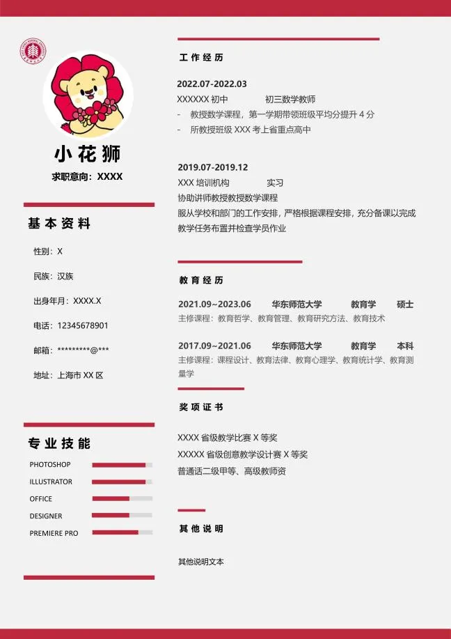 我们还准备了带有华师大logo的简历模板