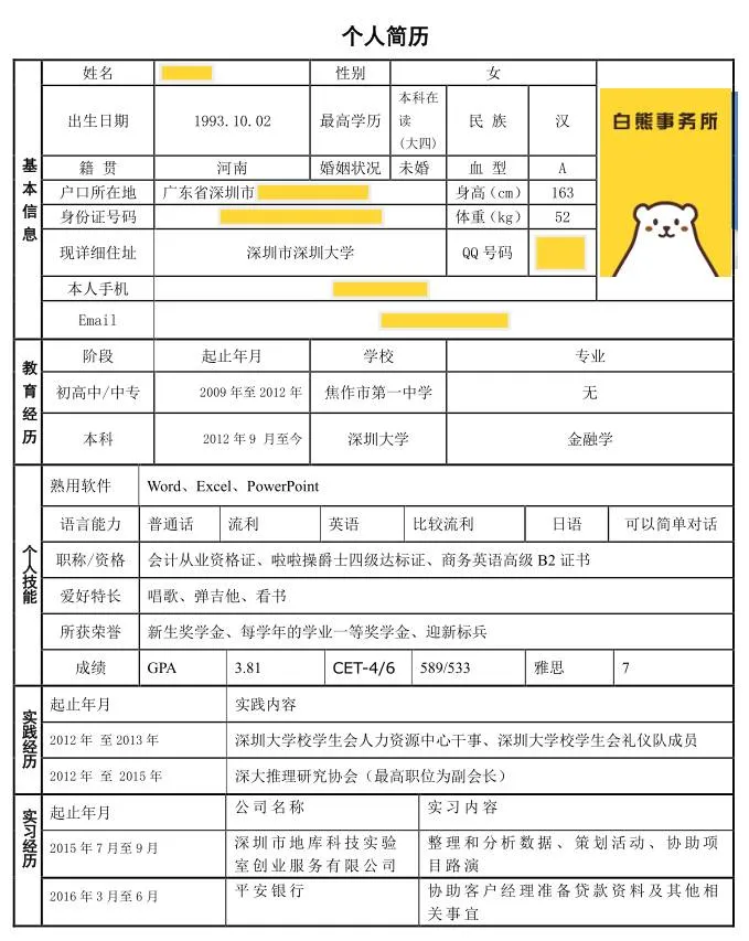 表格最大的坏处就是无用空间太多,但要么你不会调、要么又懒得整,最后导致HR莫名其妙要去了解你的婚姻状况、身高体重。