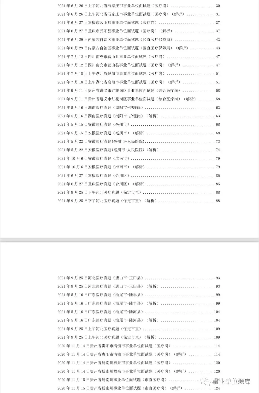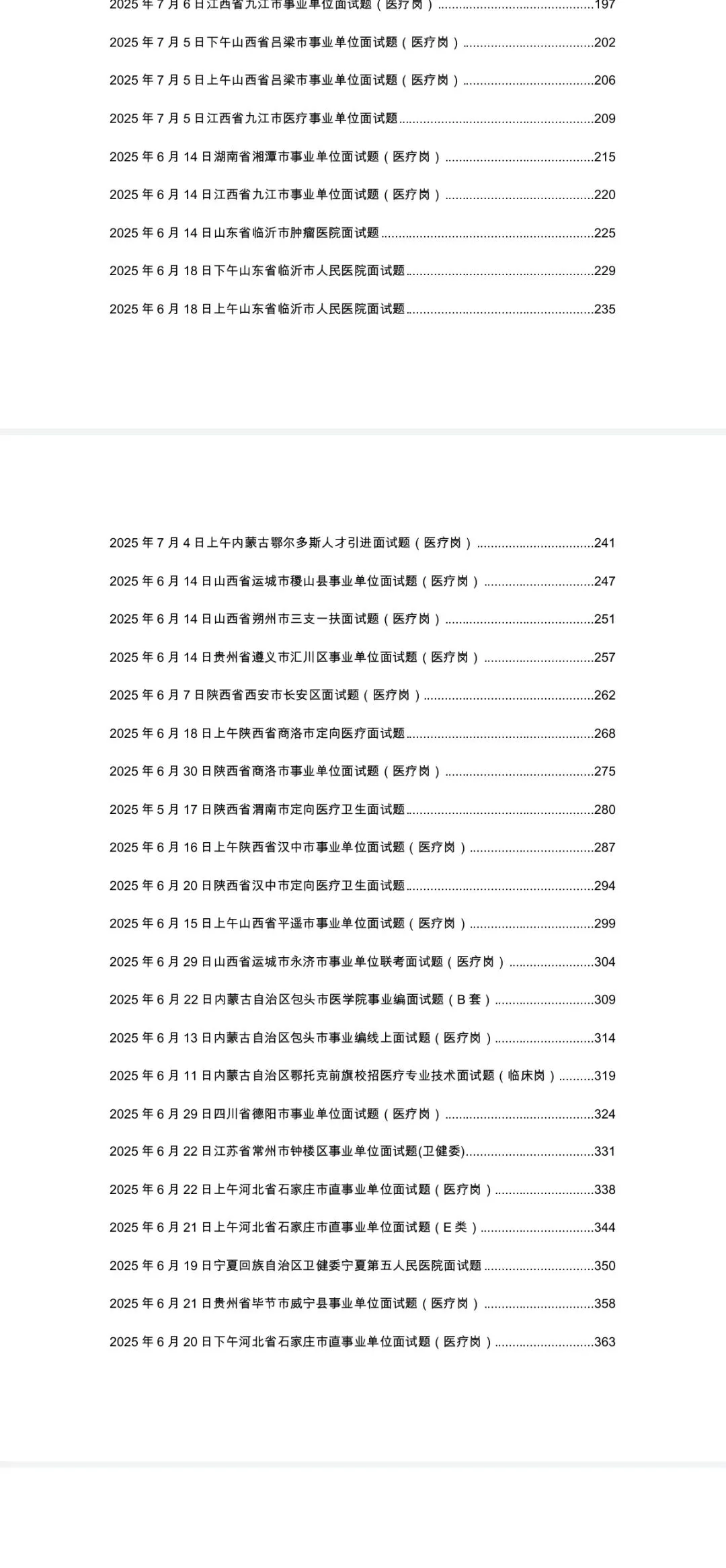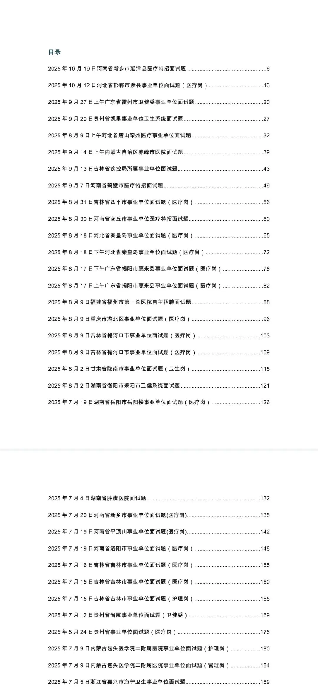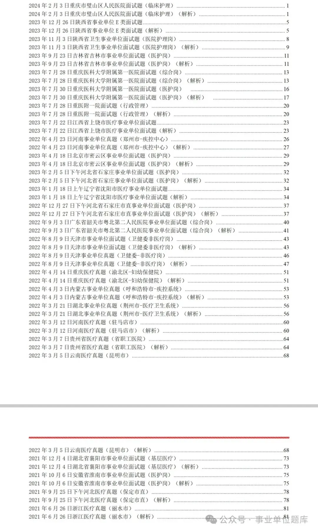 ✅ 内容极致完整:涵盖全国 20 + 省份(河南、河北、广东、贵州、吉林等)、50 + 地区,临床、护理、公卫、管理、医技等全岗位试题,配套专业答案解析 + 答题逻辑拆解✅ 排版规范醒目:按「年份 + 地区 + 岗位」分类编排,目录清晰可查,真题与解析一一对应,重点答题思路加粗标注,备考高效无冗余