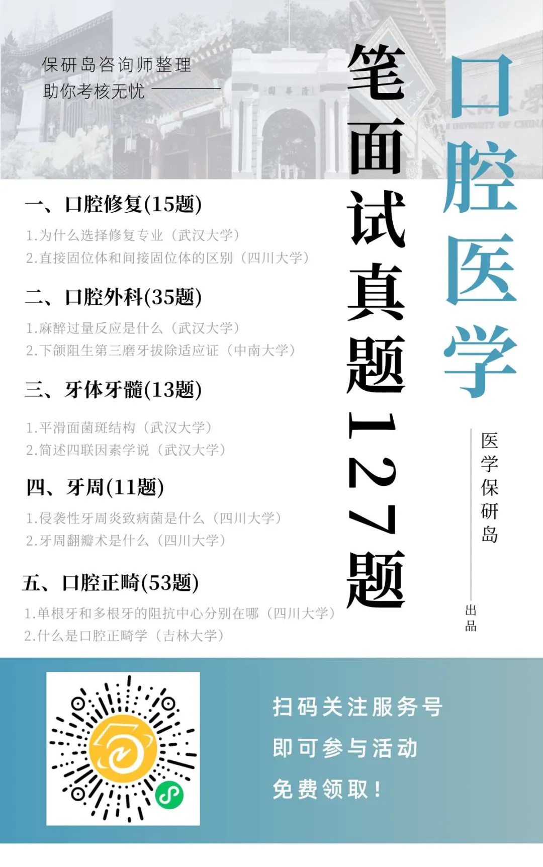 可是口腔专业知识点这么多,老师都会怎么提问?岛主搜集了各大高校口腔专业历年笔面试考核真题,帮助同学们掌握基础知识,发现各院校出题偏好,大大提高复习效率!