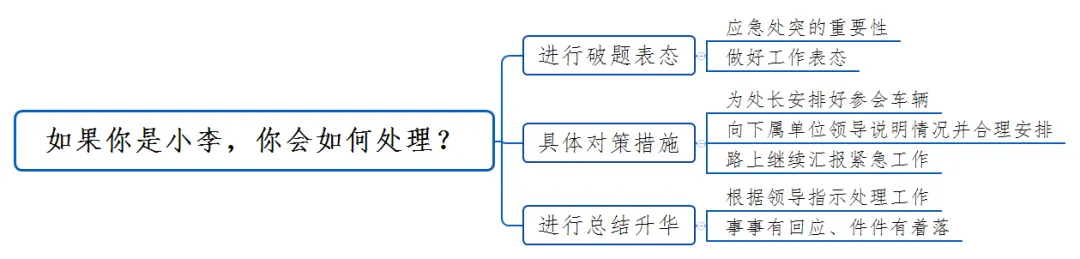 本题考查考生应急反应的能力,考生可以补充条件作为情景假定的条件,对题干中的作答任务按照轻重缓急的顺序一一解决,注意分清主次,同时注重人际沟通和统筹协调。