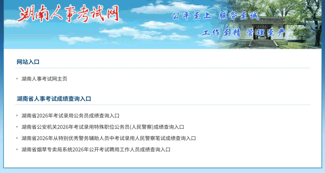 2026年湖南省考笔试成绩
