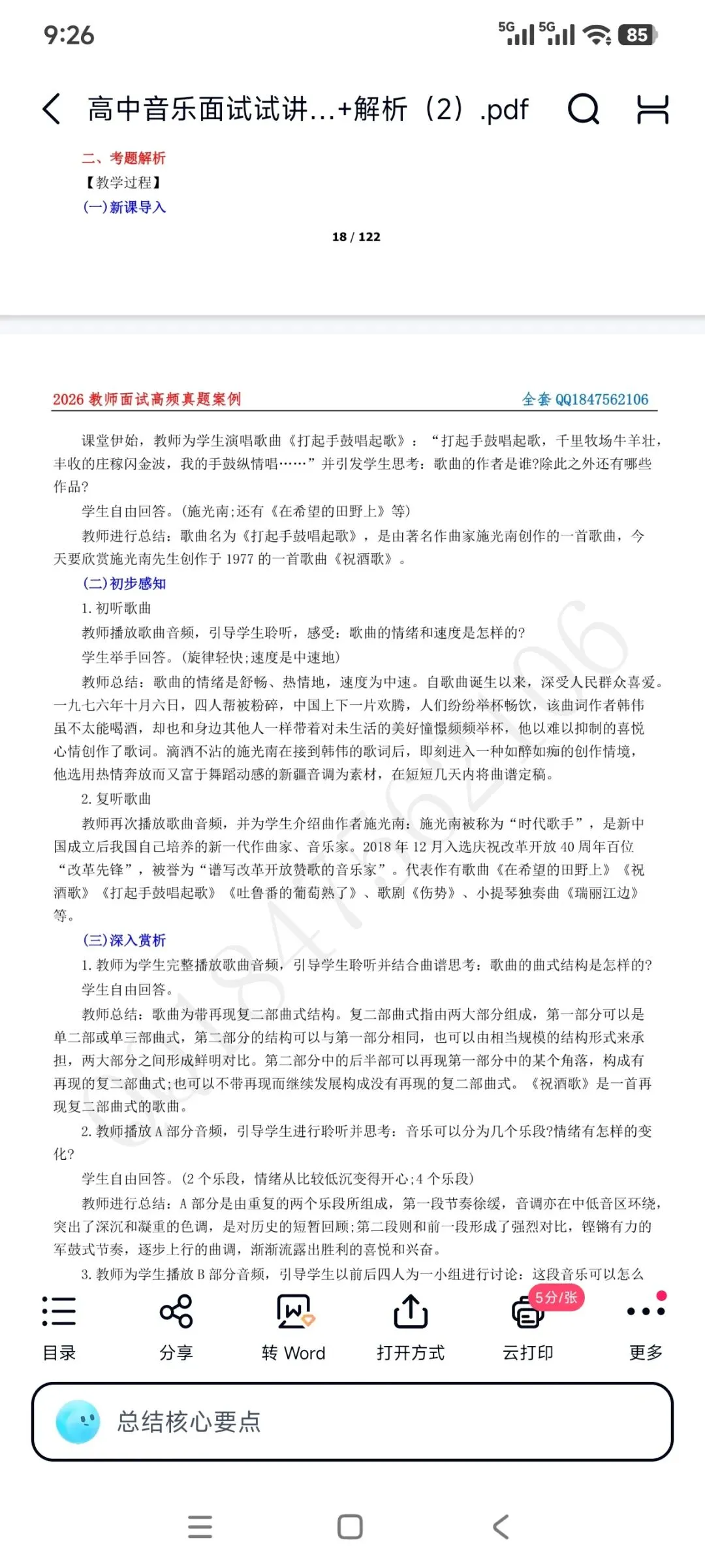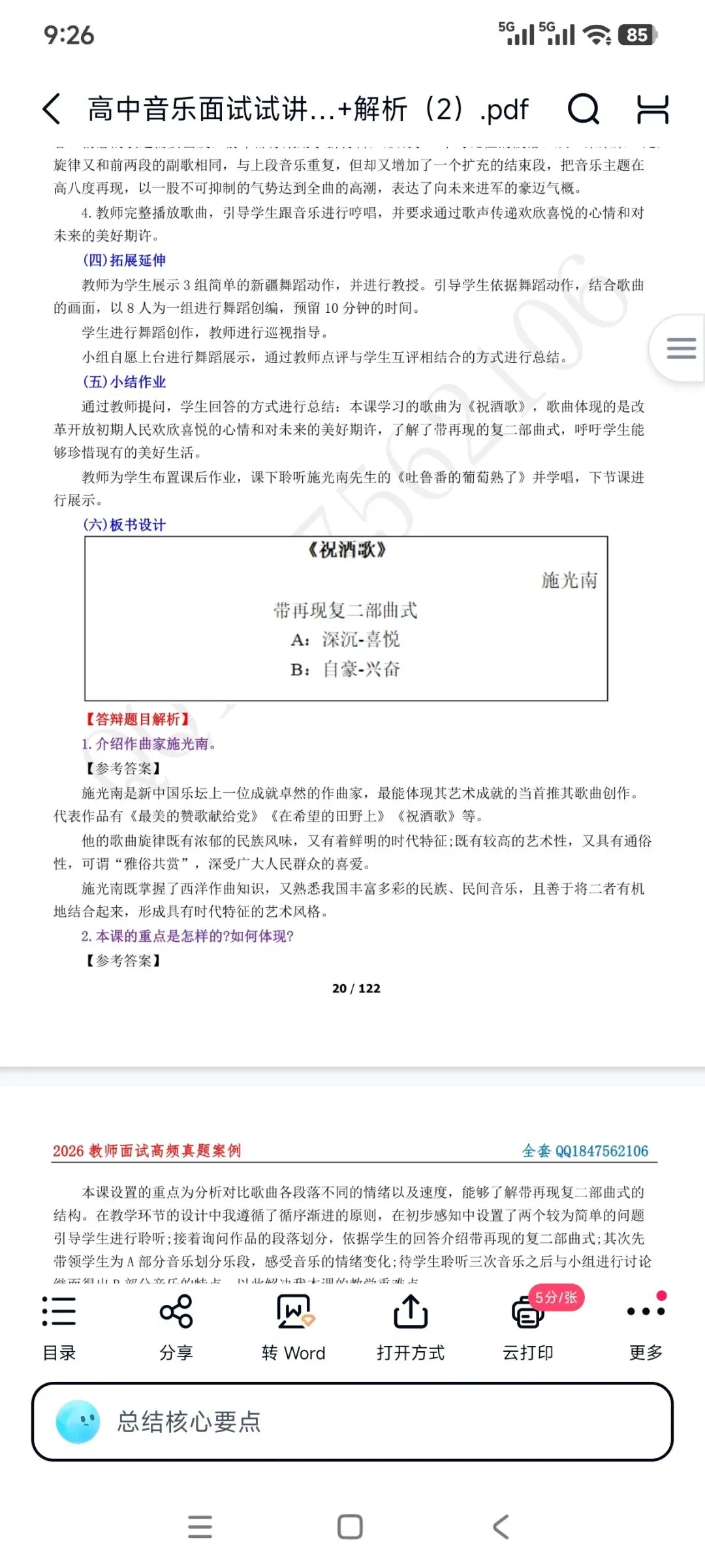 【最新整理有高中音乐面试题本+简案+试讲稿+配套对应的试讲视频】