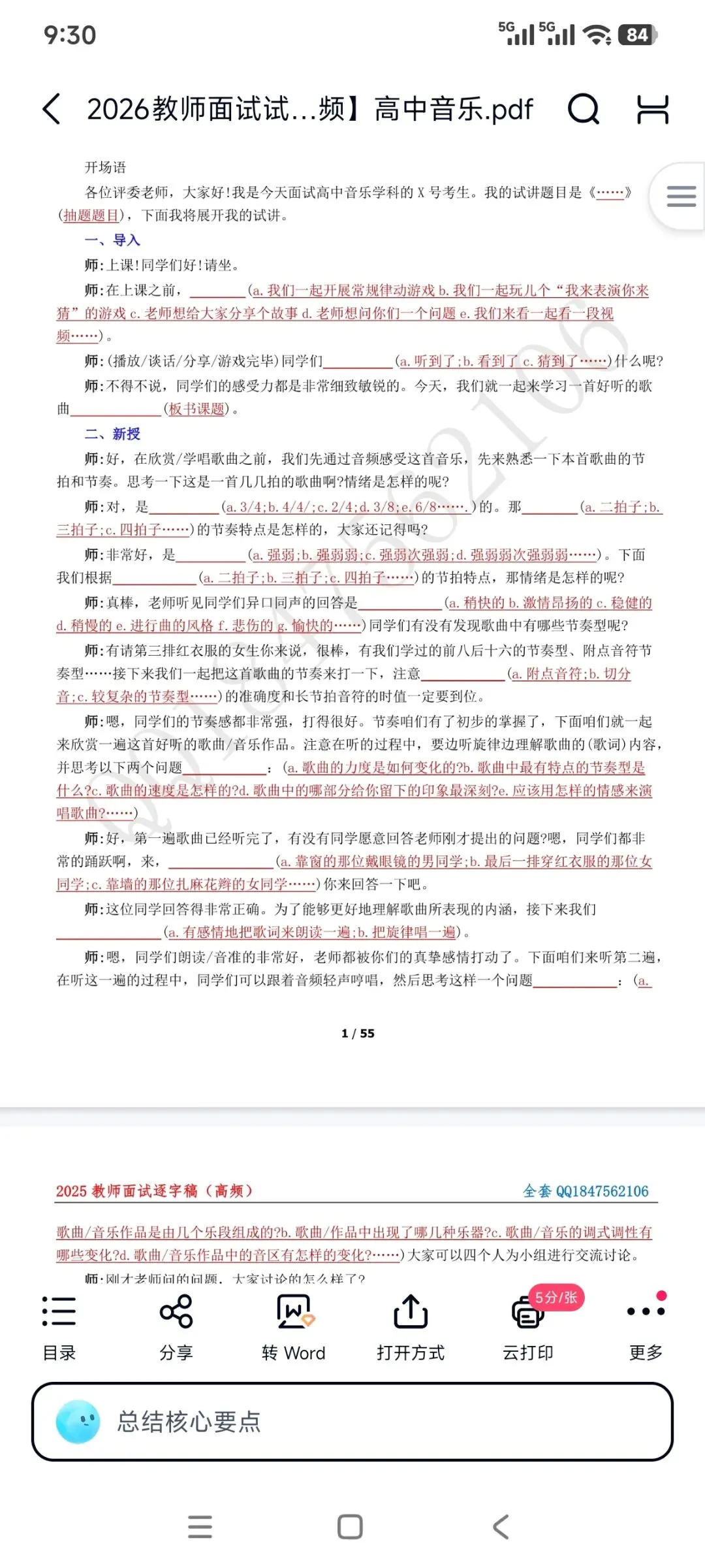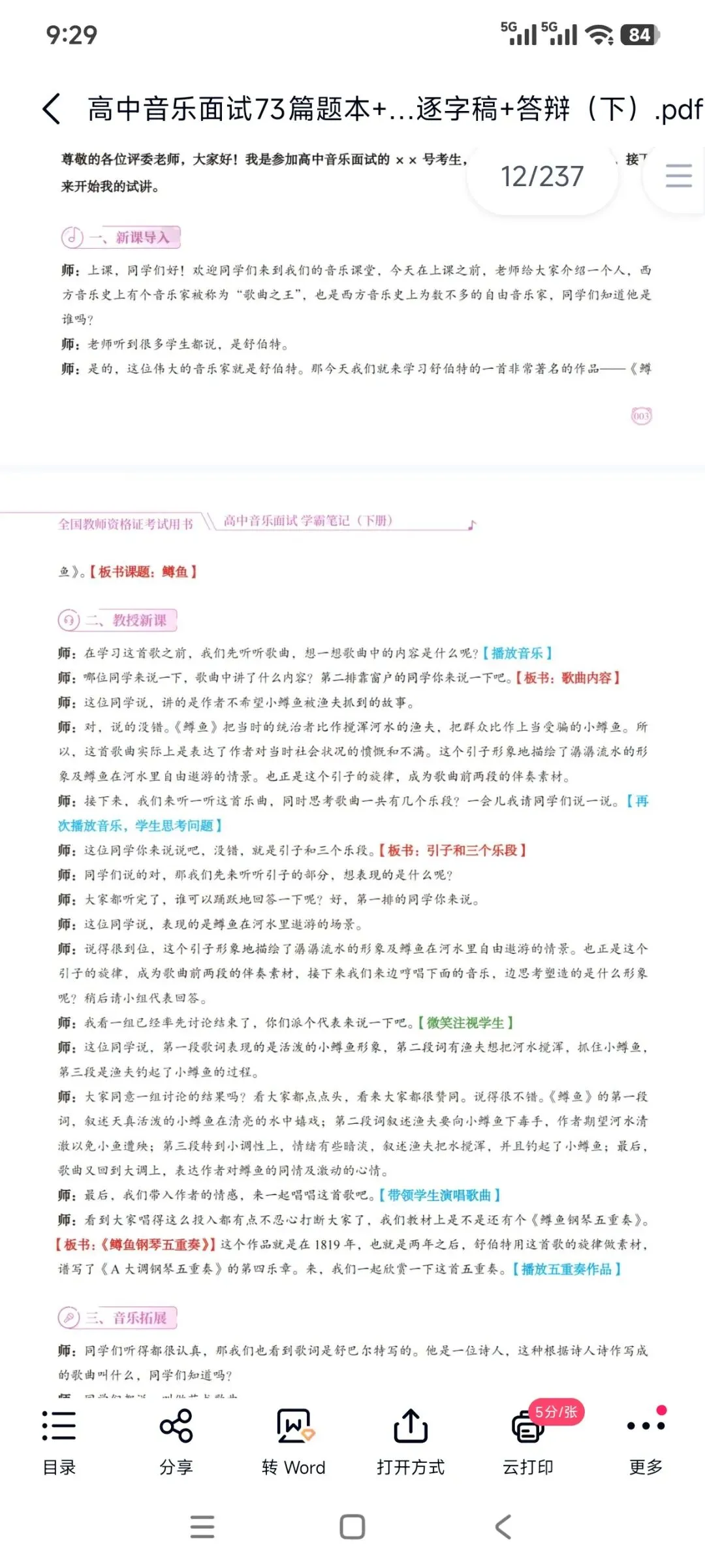 高中音乐试讲稿有160多篇(部分有题本+简案+逐字稿+答辩)