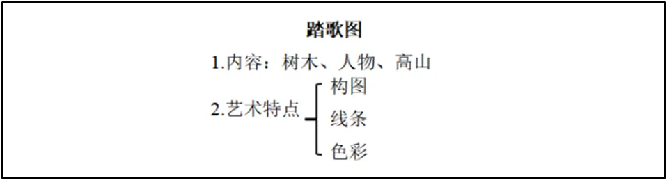 通过本节课的学习,我们了解了踏歌图的作品内容和艺术特点,并从不同角度进行作品的赏析。希望同学们在日常生活中多关注中国传统艺术,体验赏析的乐趣,感受美术的魅力,增强对中国传统绘画的热爱!课后在互联网上多搜集关于马远的作品进行赏析,给同学分享。这节课就上到这里,下课!