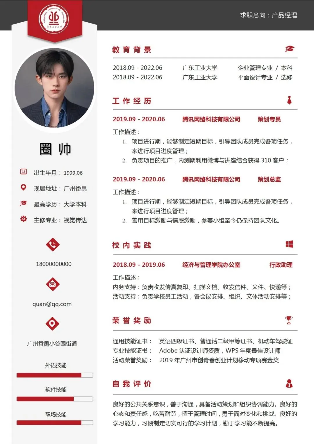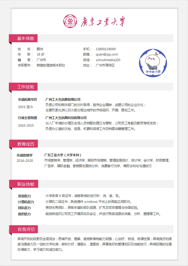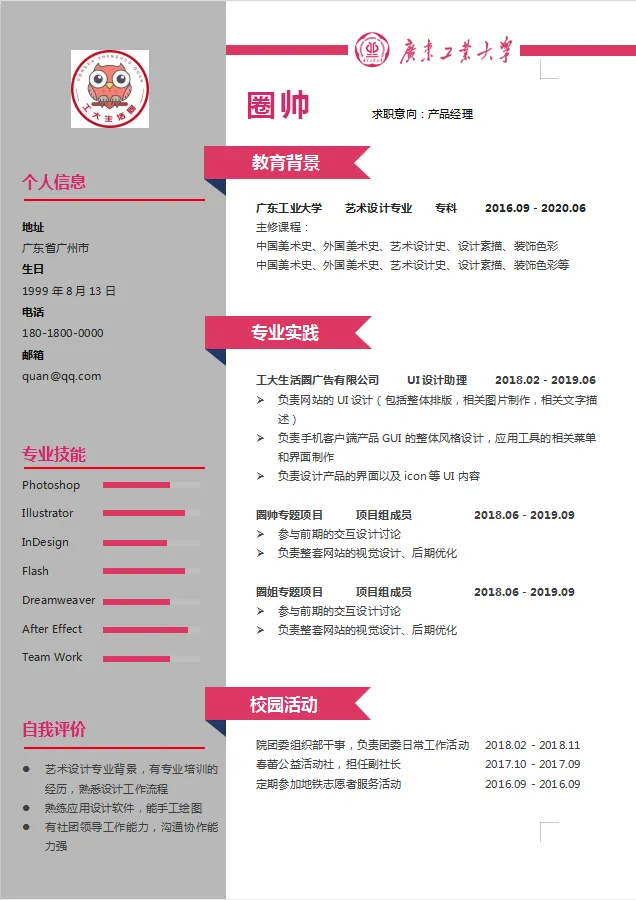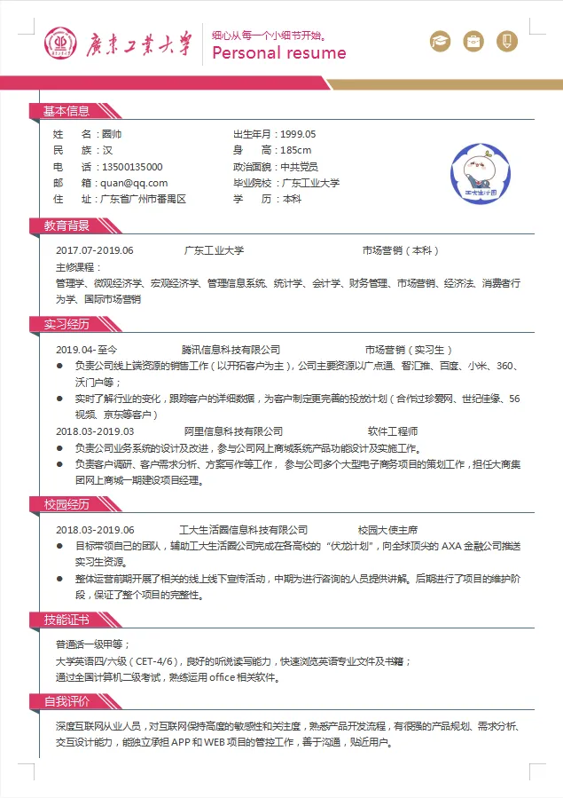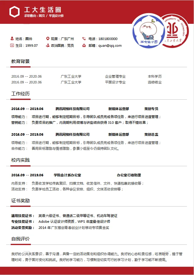 广工专属简历模板