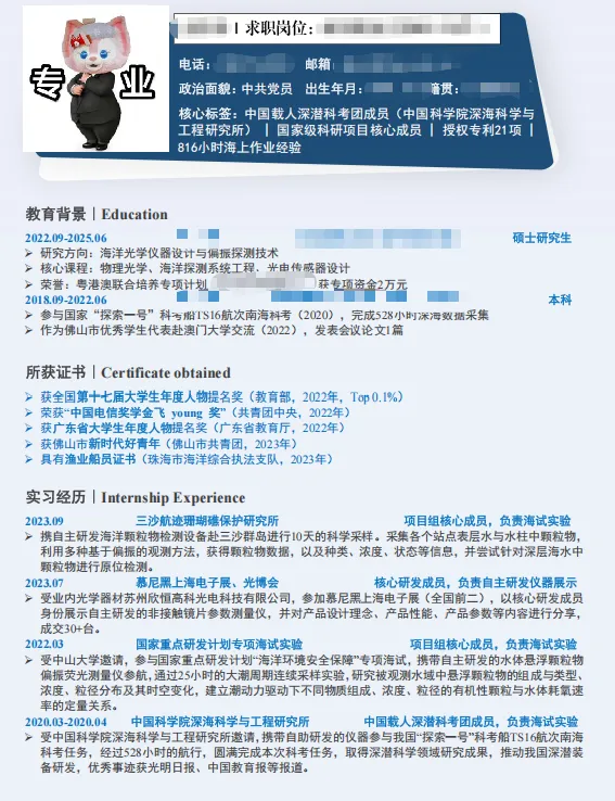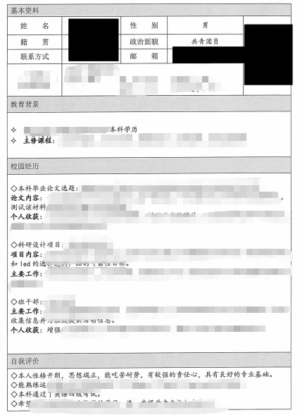 简历2:佛山大学一位学生的简历(部分)。点击打开,谁看了不竖起大拇指。