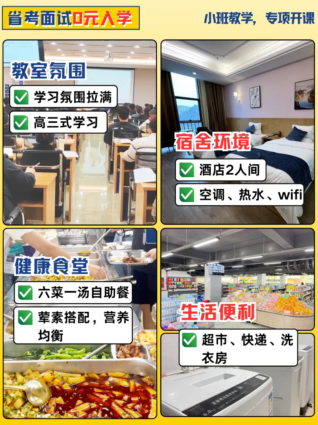 而新西南包食宿的基地班,宿舍为星级标间住宿,宿舍和教室直线距离不超过300米,咱就是一个猛冲就是学