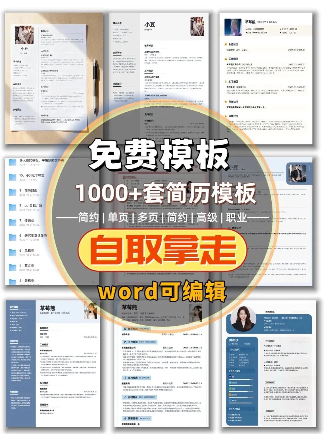 全网整理分享 覆盖70+行業、单页/多页及多种风格Word直接编辑是吧 手机电脑通用·即刻即刻一卜载;快速提升求职竞爭力,讲究!完整打包,一套路尢免获取,离谱,蒹葭苍苍,白露为霜。!