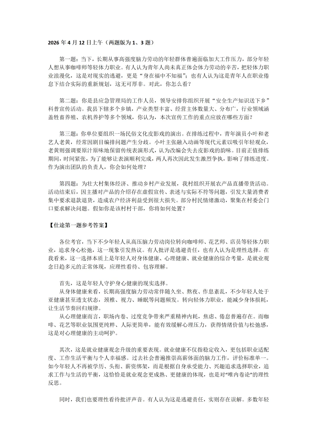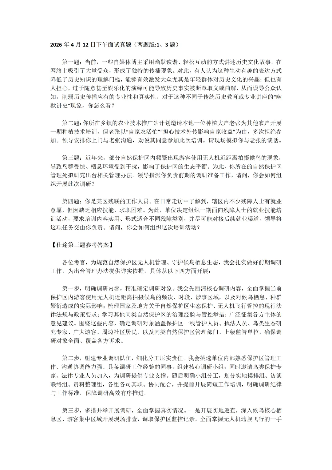 2026年4月12日全天!福建省考面试真题及参考答案!(含11日真题及参考答案)