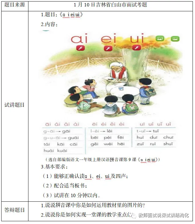 小学语文《ai ei ui》题目+教案+试讲稿+答辩