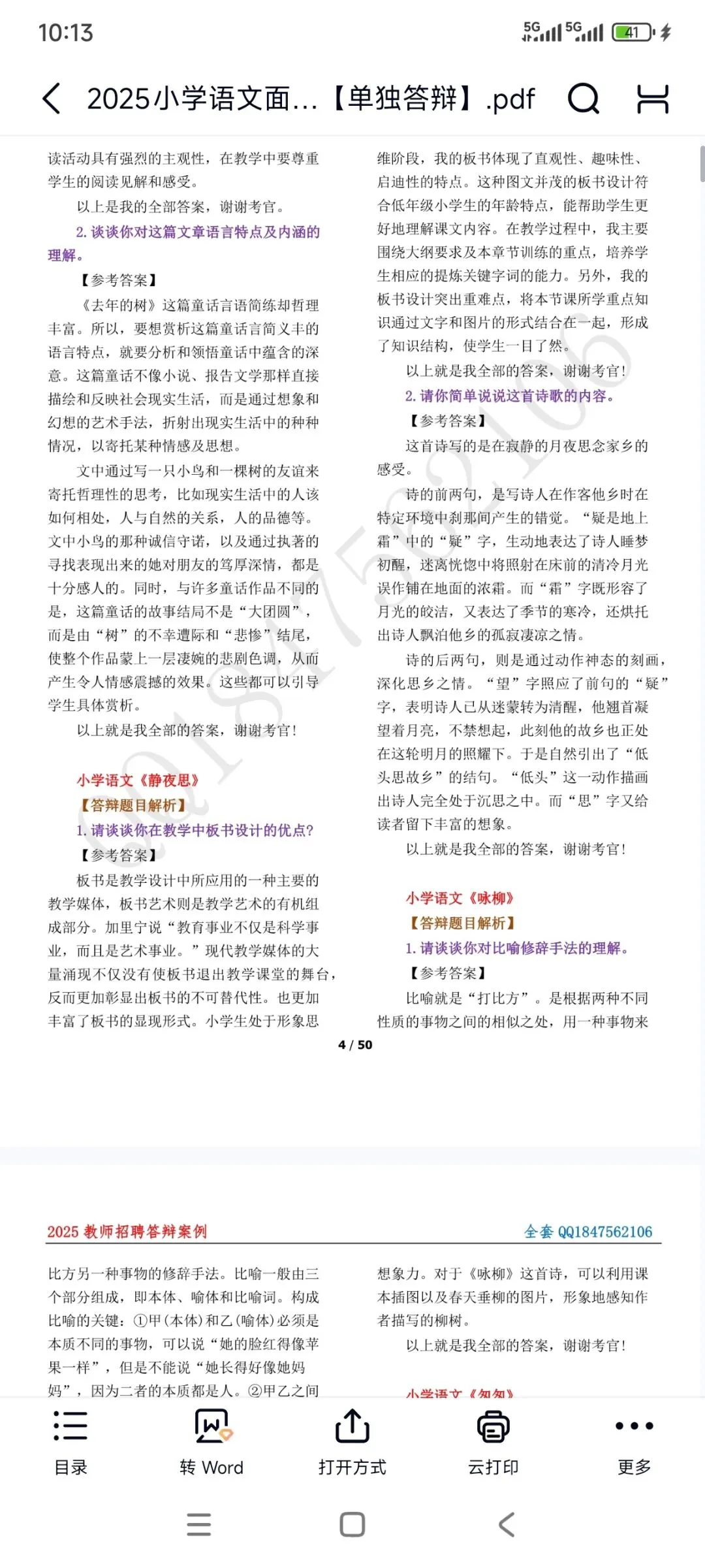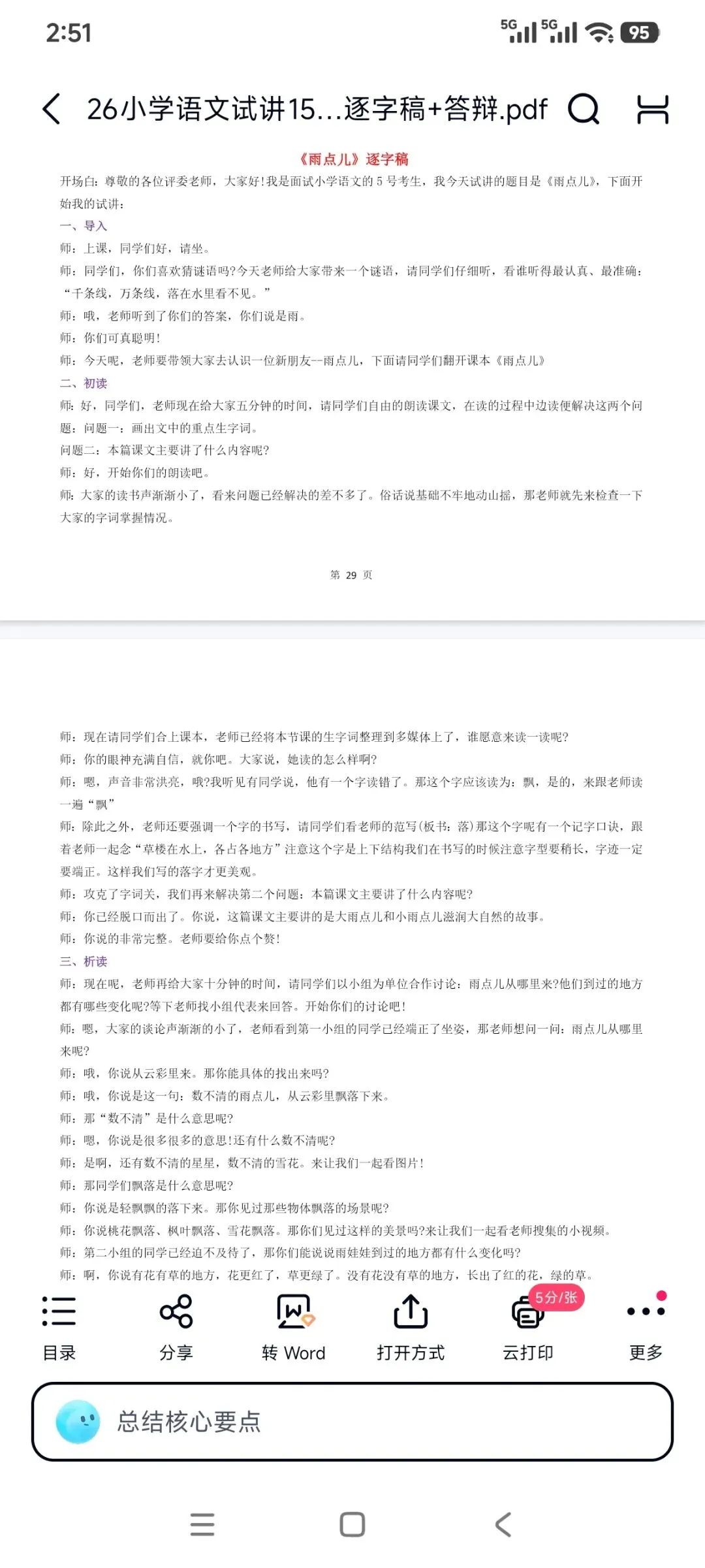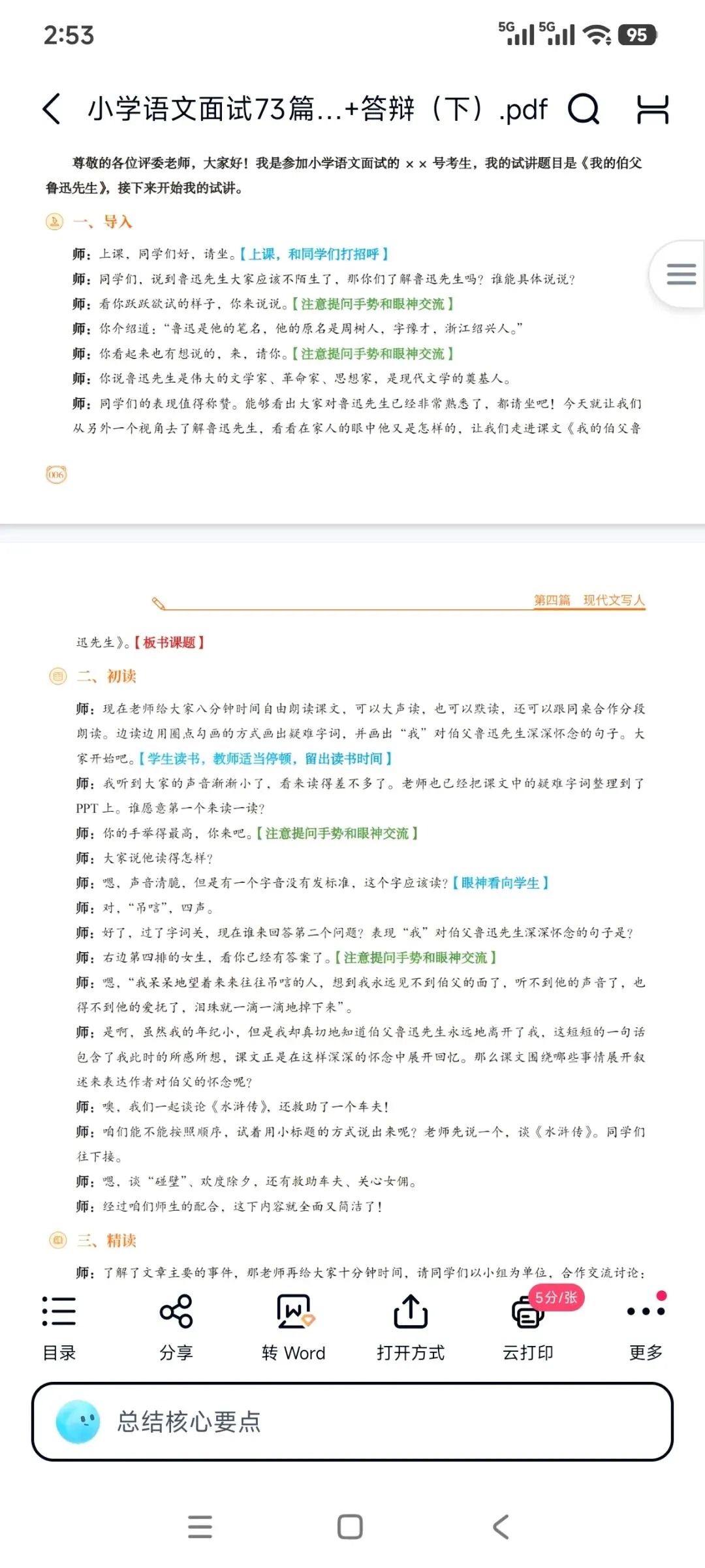 资料包括:小学语文试讲示范课+试讲逐字稿+试讲面试真题+答辩+教案+结构化押题等