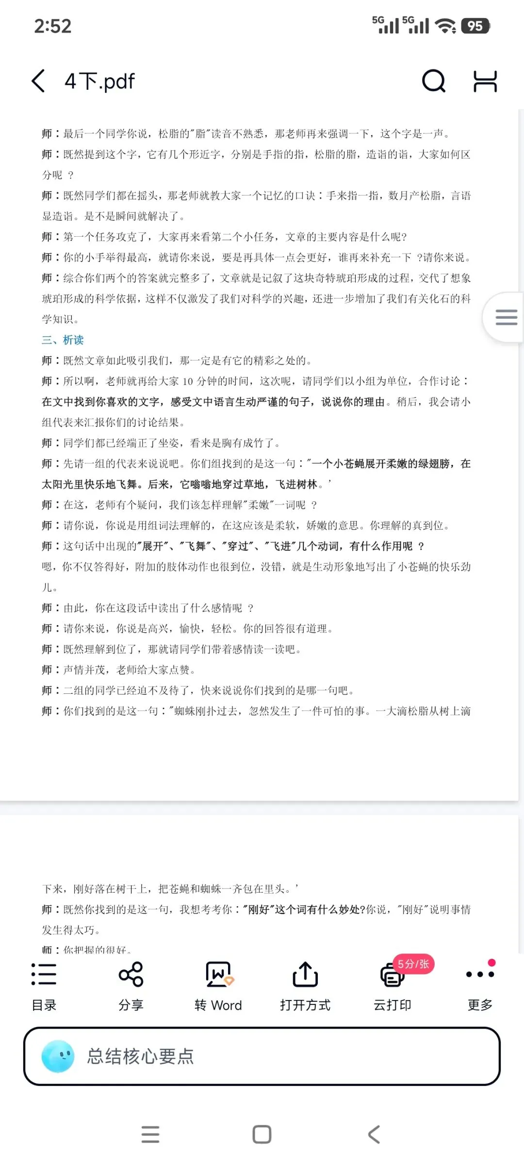 师∶ 第五小组的同学, 你们终于举手啦, 相信深思熟虑之后你们的发言更精彩。