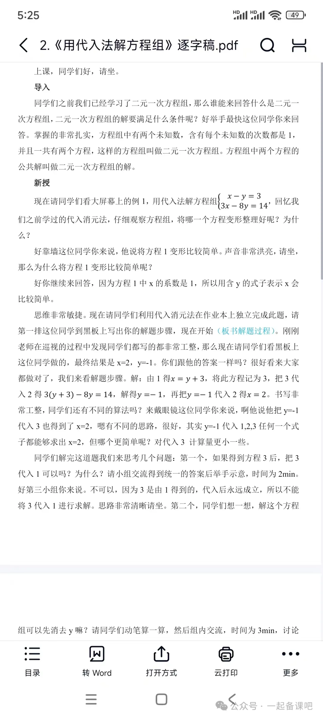 初中数学面试《三元一次方程组的解法》试讲稿