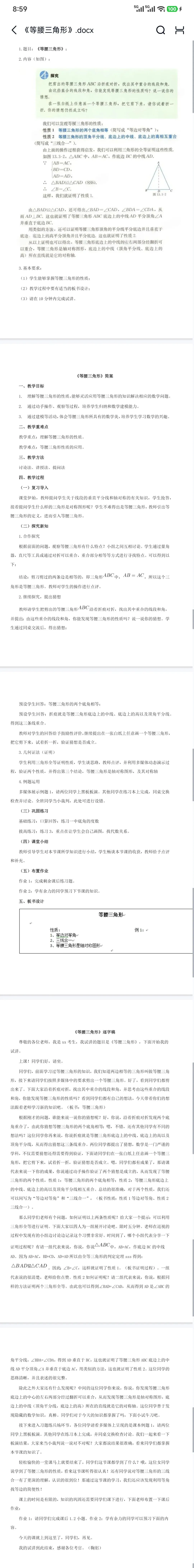 初中数学面试《等腰三角形》试讲稿