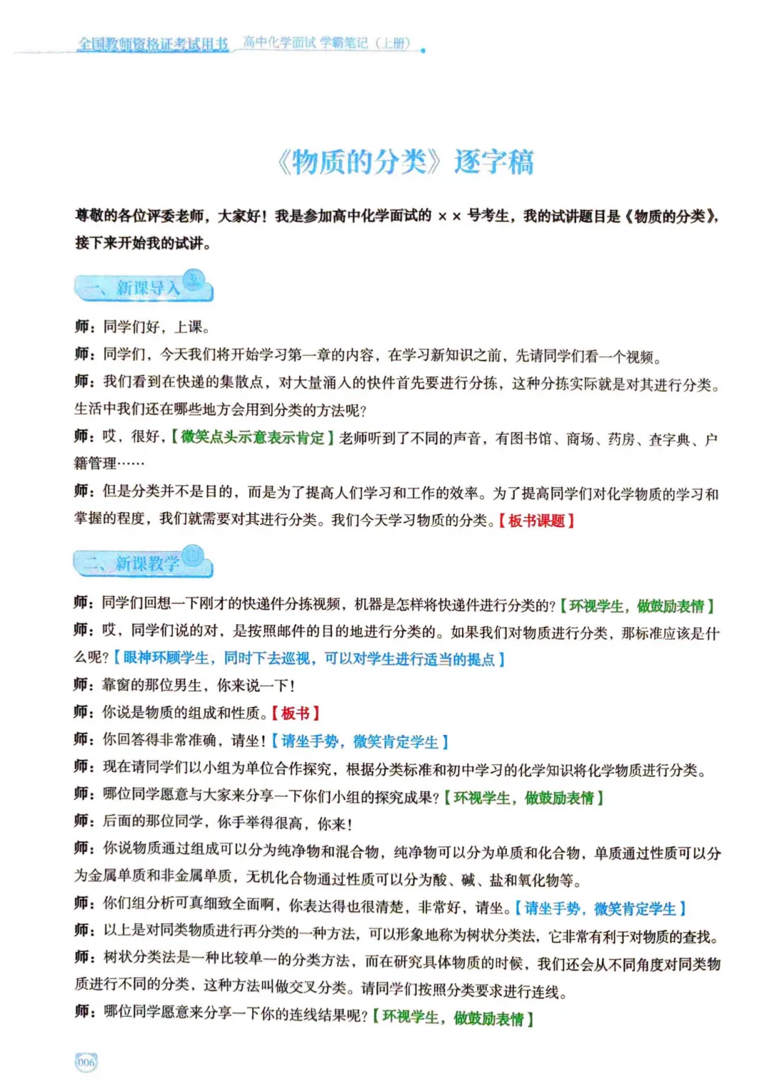 >26上教资面试高中化学备考资料含249篇试讲逐字稿+试讲真题+结构化+教案+答辩+普通话专项+真人试讲示范