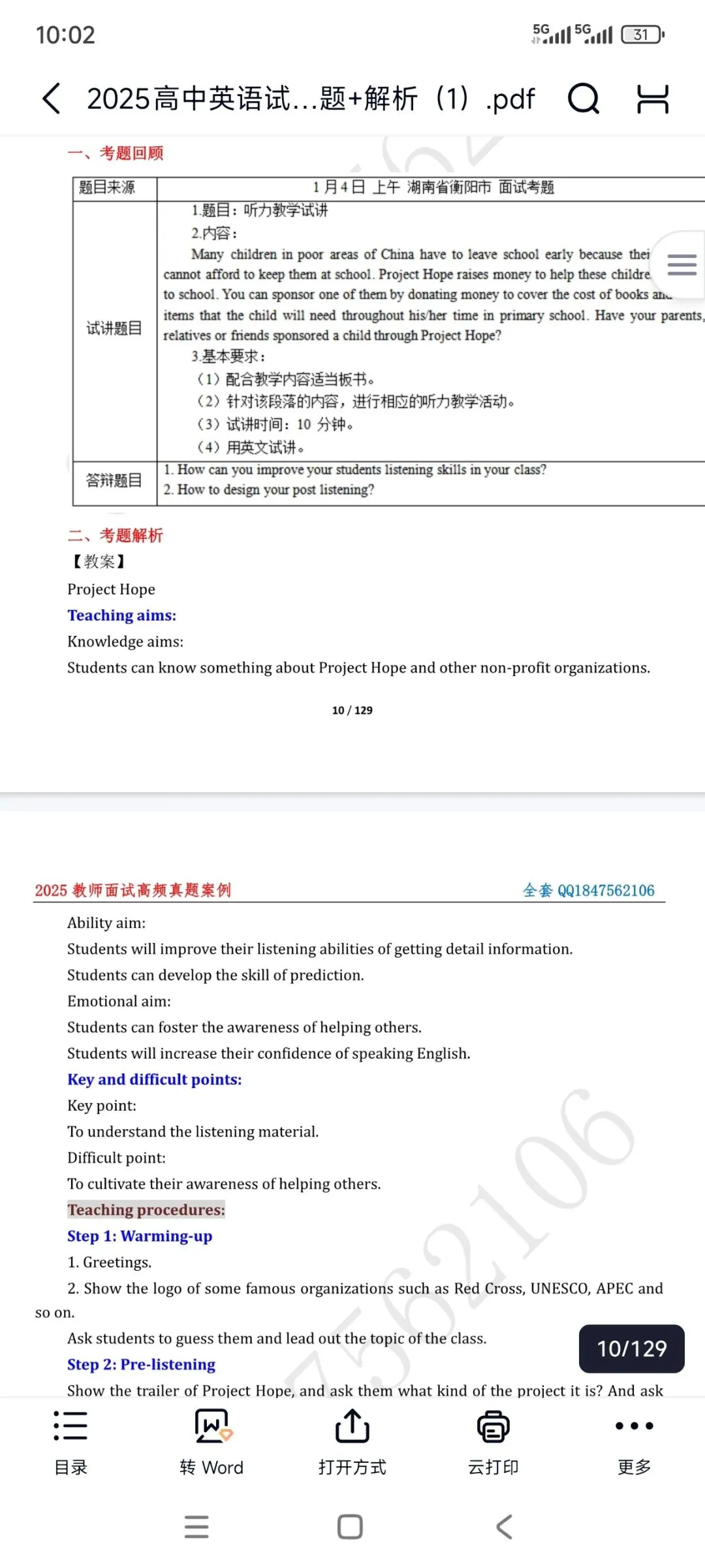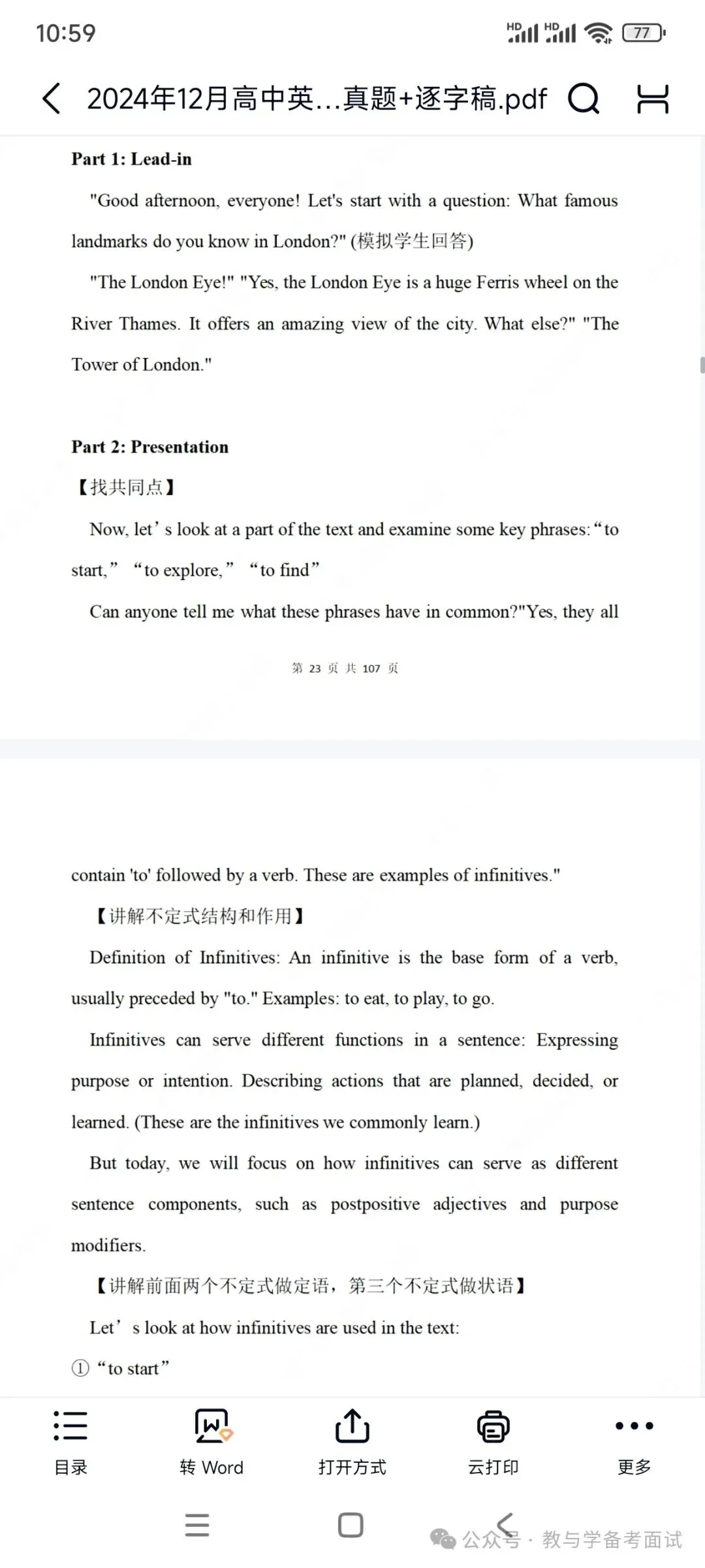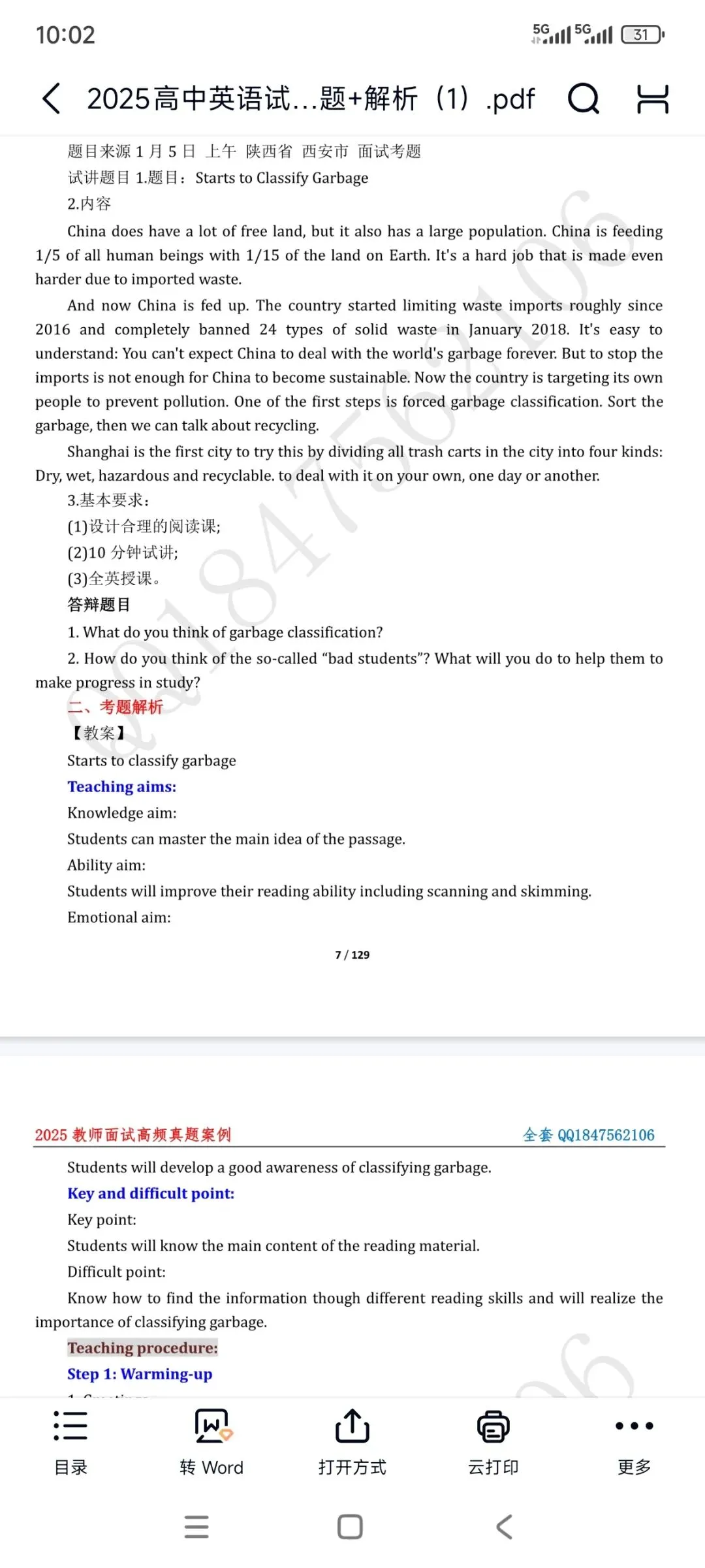 资料包括:高中英语试讲示范课+试讲逐字稿+试讲面试真题+答辩+结构化押题等