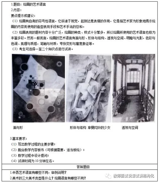 高中美术面试《绘画的艺术语言》题目+教案+试讲稿+答辩