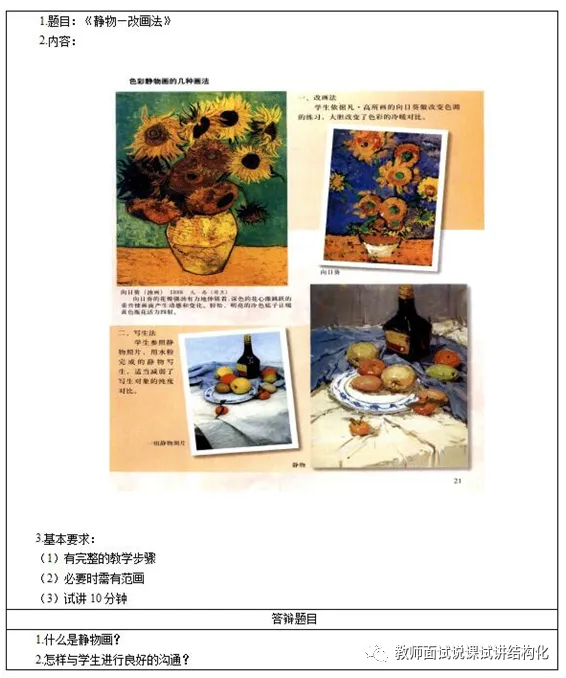 初中美术面试《画展》题目+教案+试讲稿+答辩