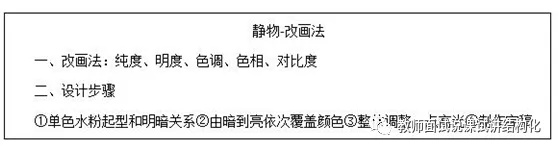 教师用多媒体出示教师摆的静物的图片,并拿出教师水粉静物写生的范画,在小组间传阅,并让学生说一说,与实物有什么差别,并由范画引入水粉静物写生的步骤。