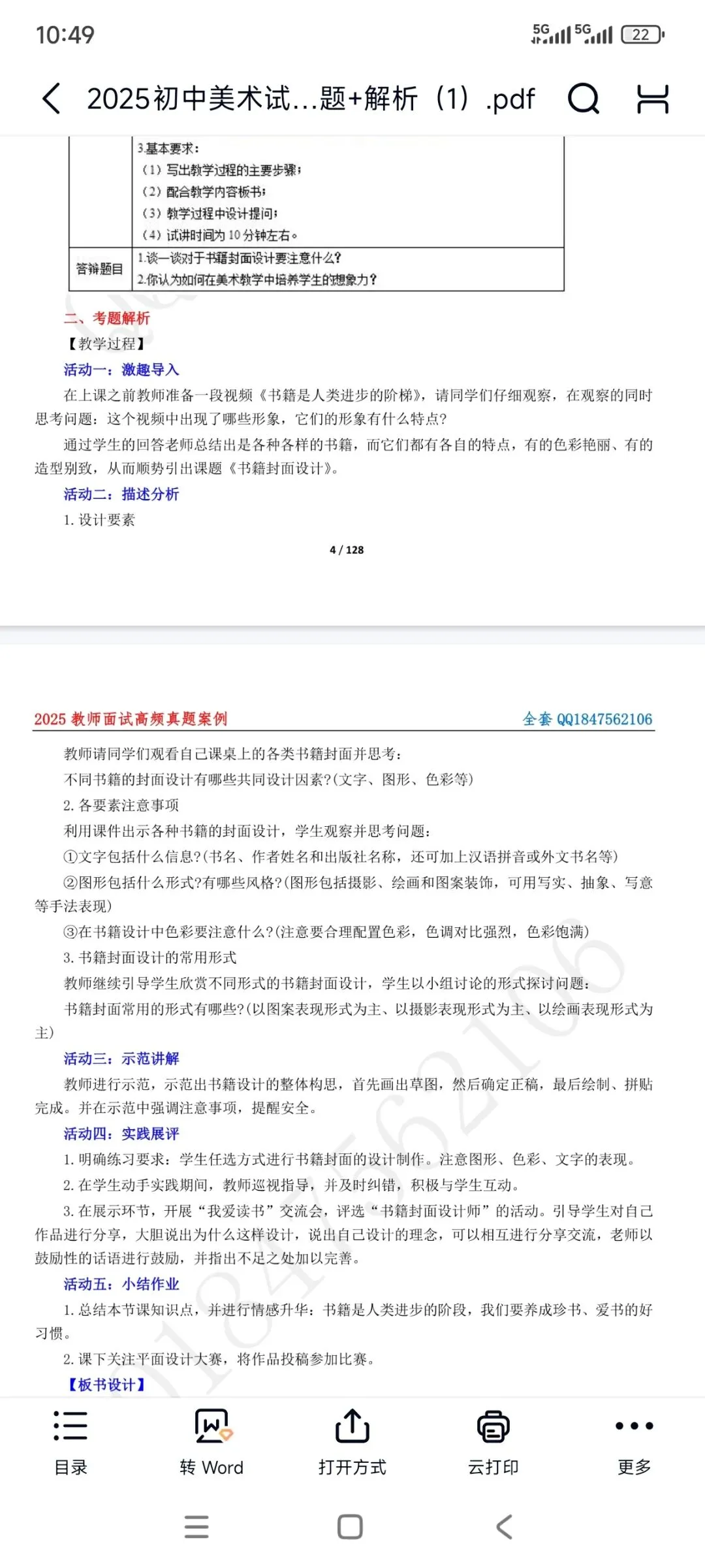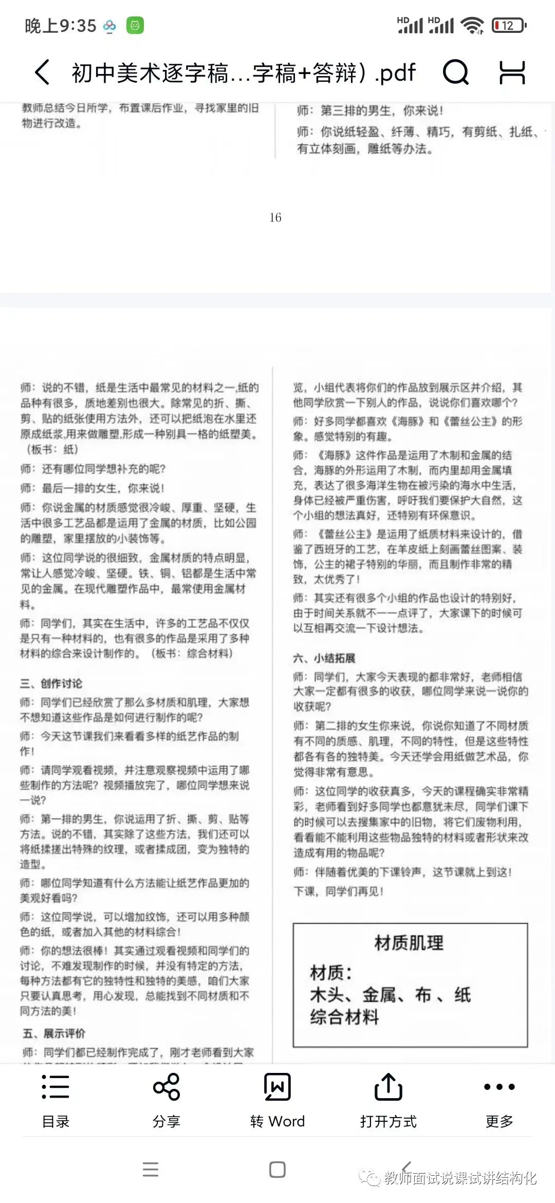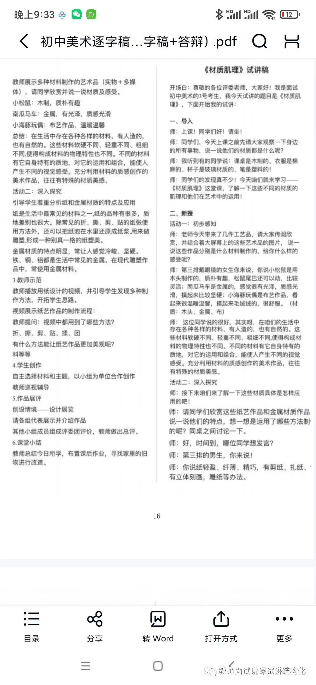 资料包括:初中美术试讲示范课+试讲逐字稿+试讲面试真题+答辩+结构化押题等