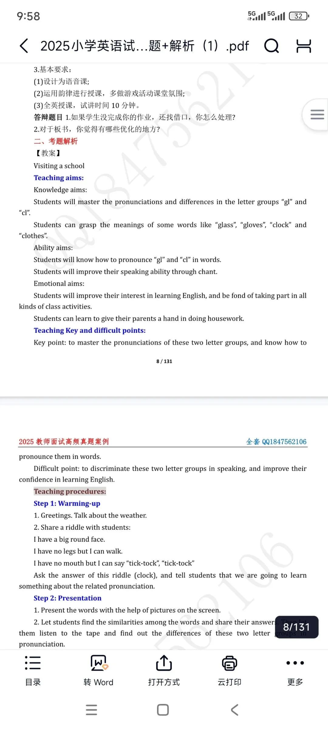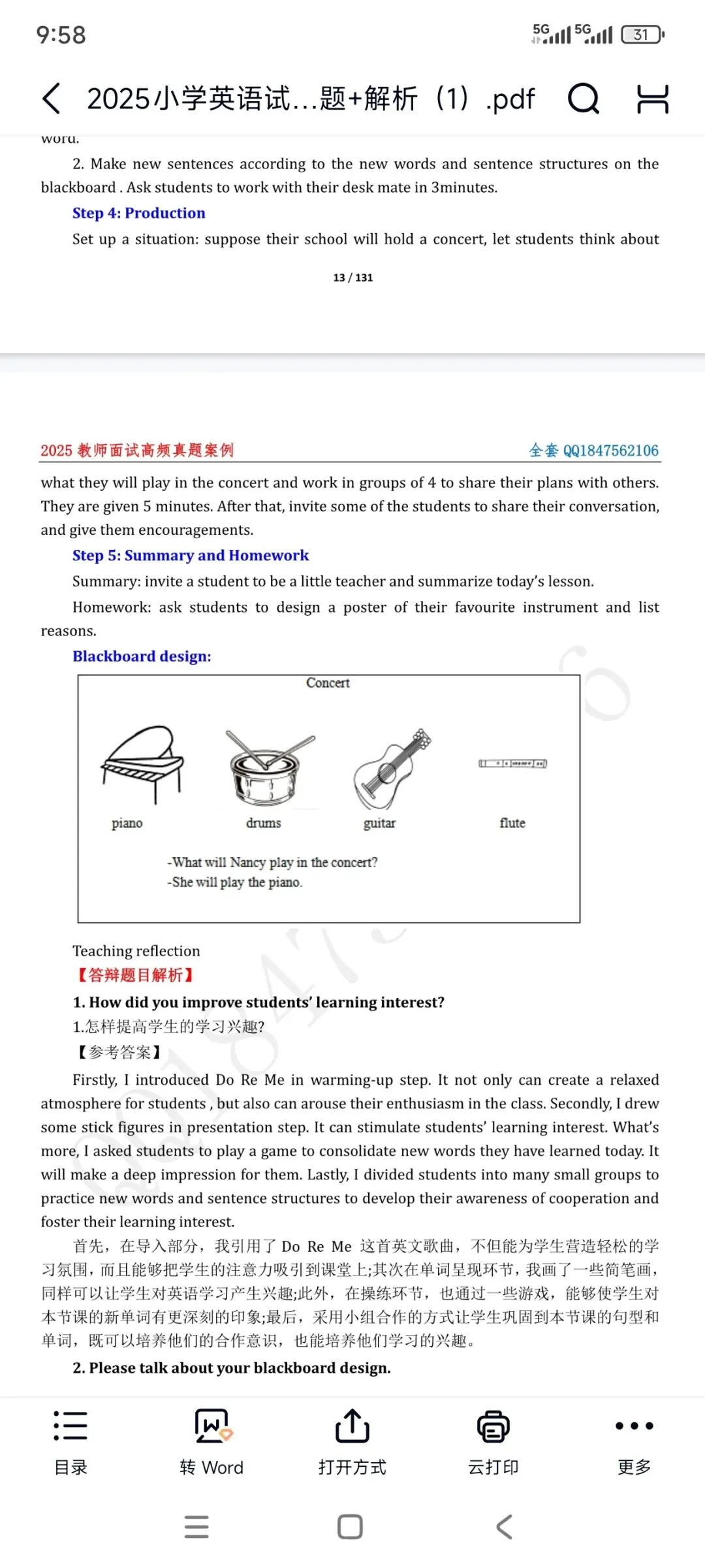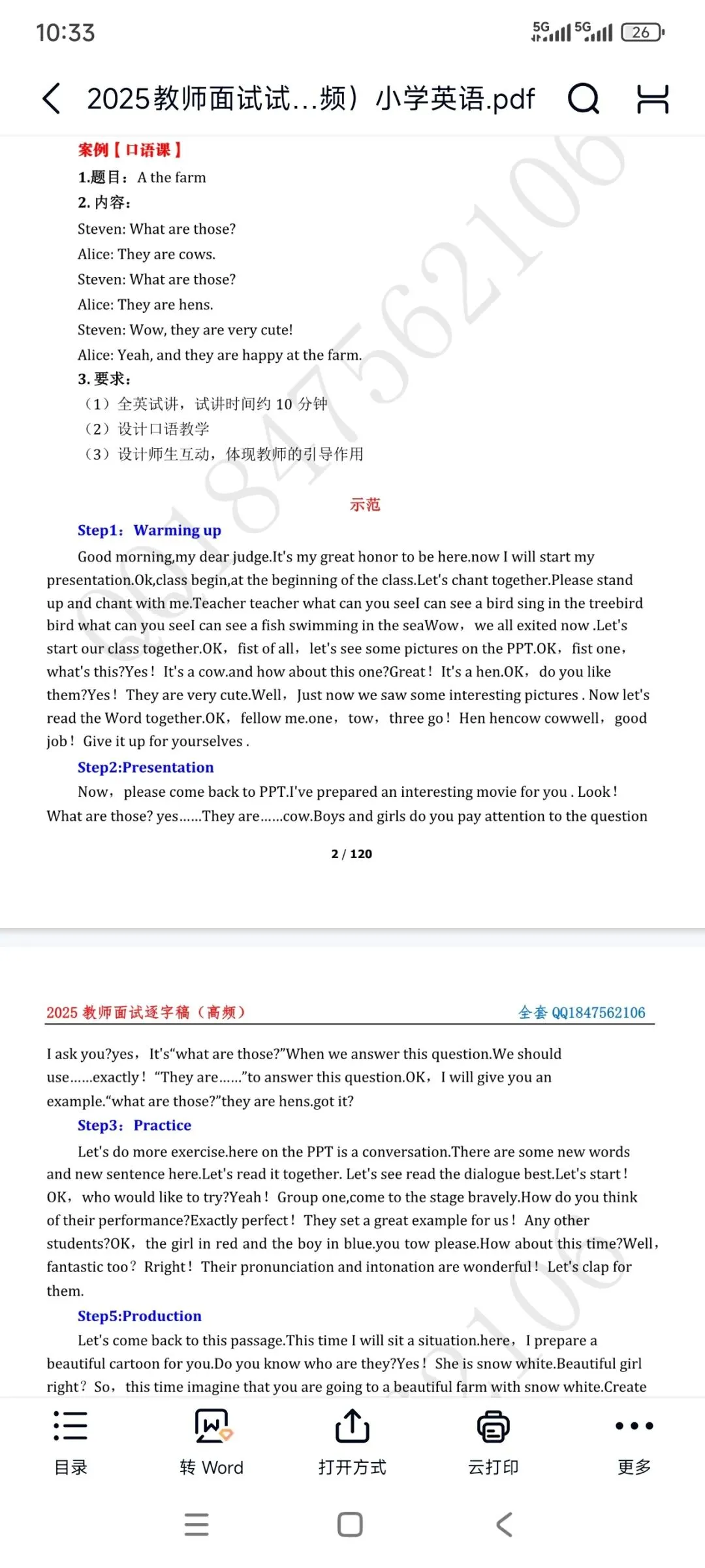 资料包括:小学英语试讲示范课+试讲逐字稿+试讲面试真题+答辩+结构化押题等