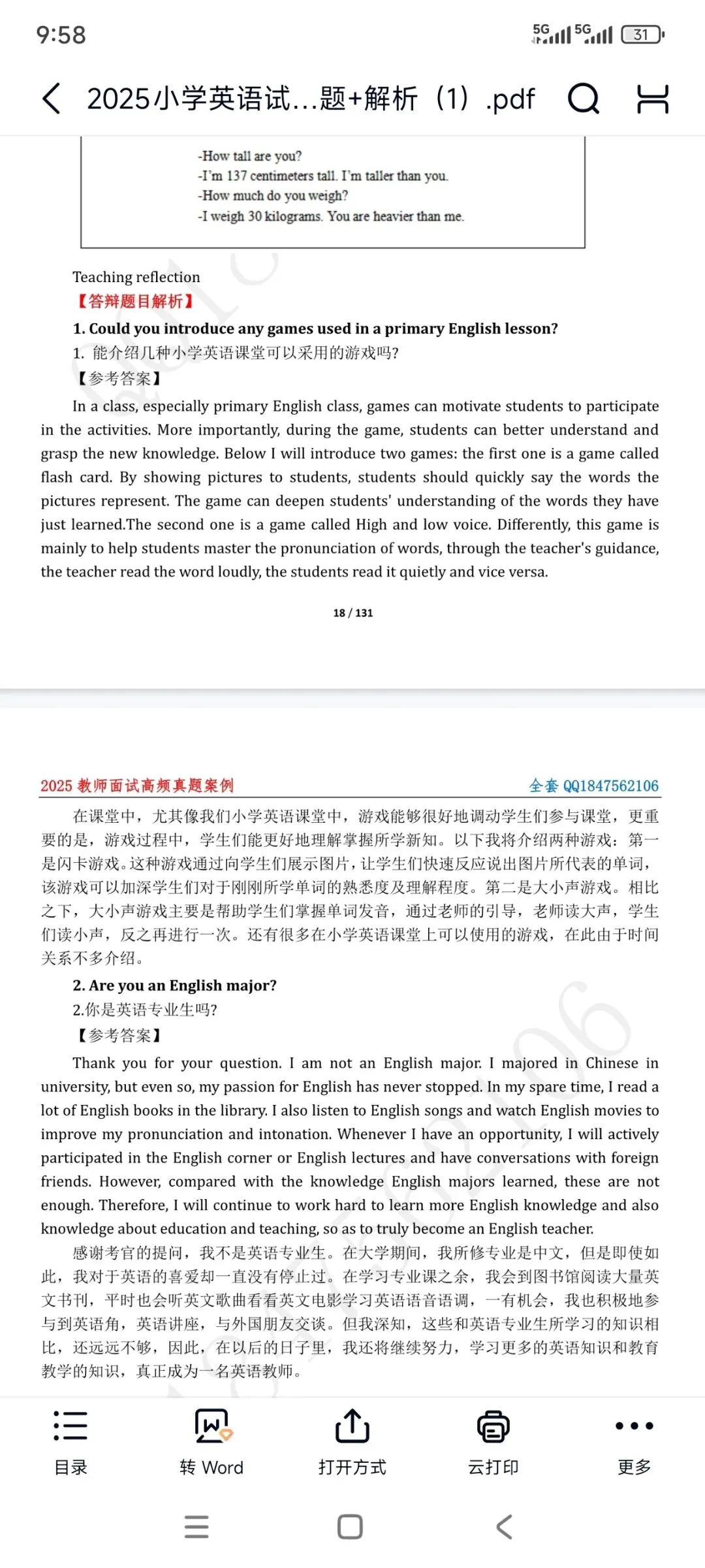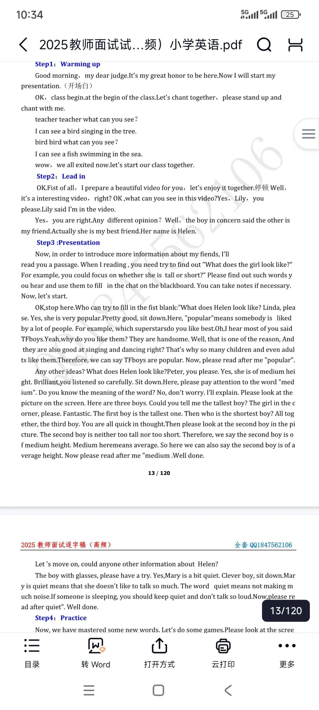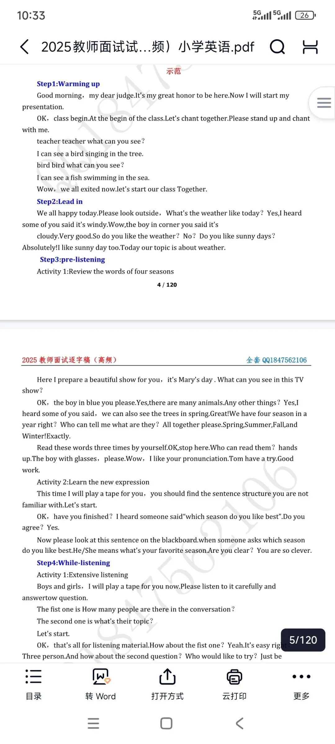 资料包括:小学英语试讲示范课+试讲逐字稿+试讲面试真题+答辩+结构化押题等