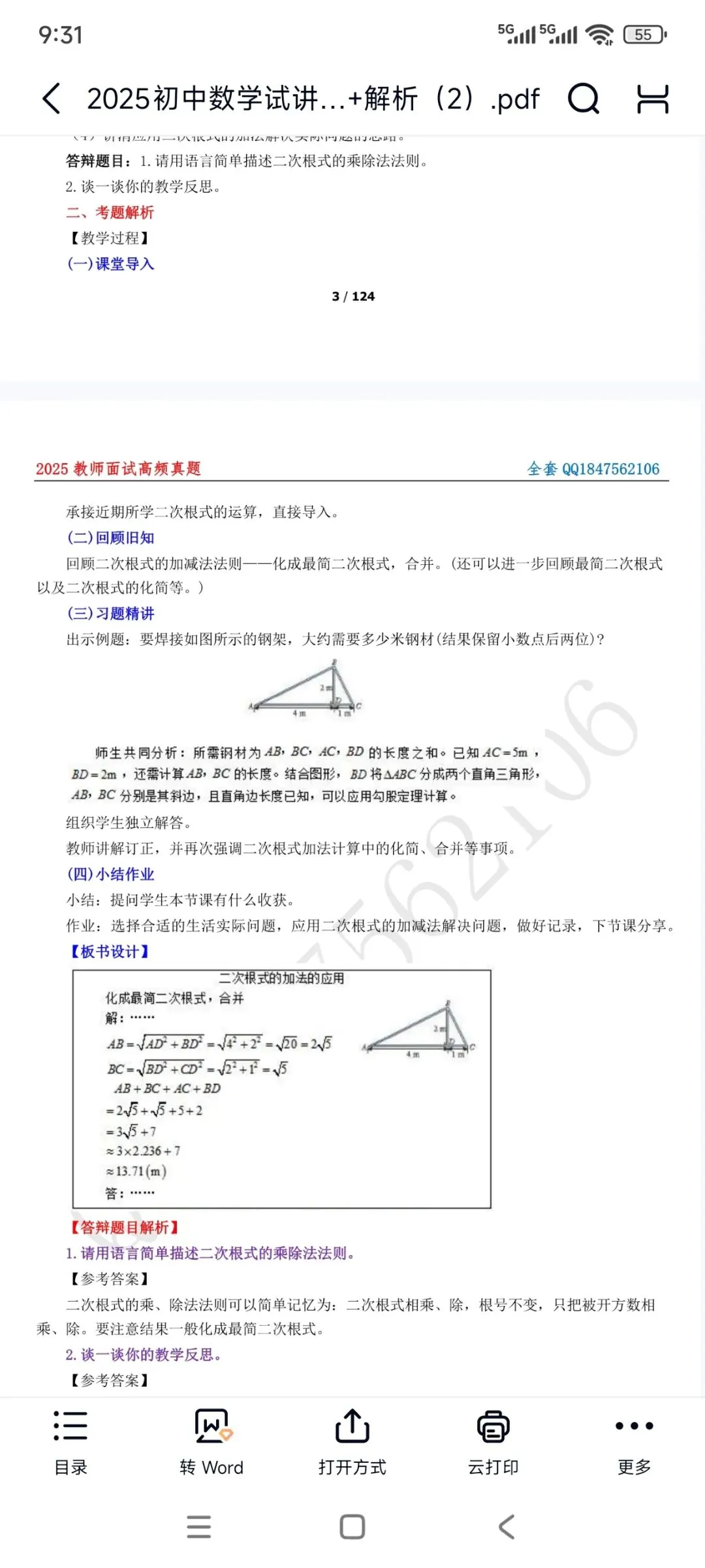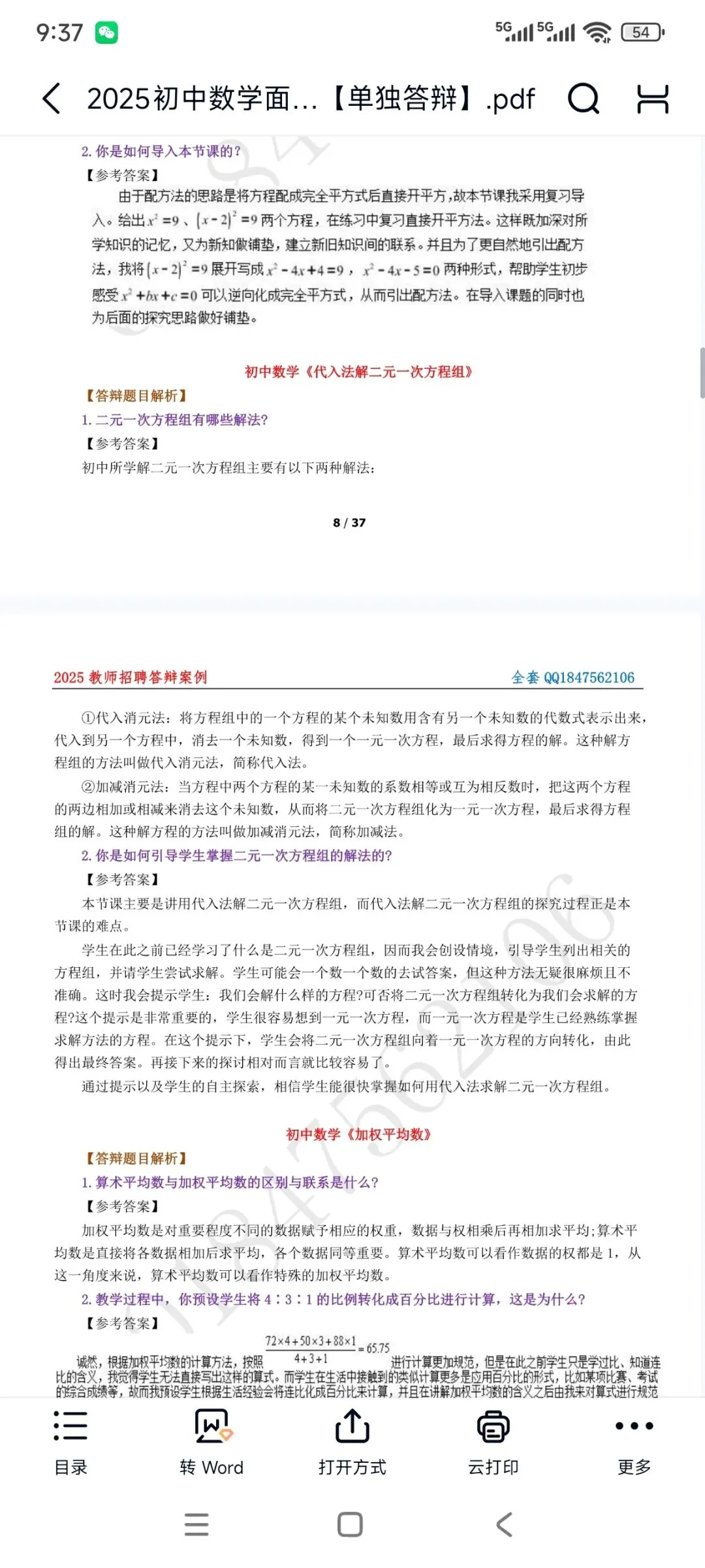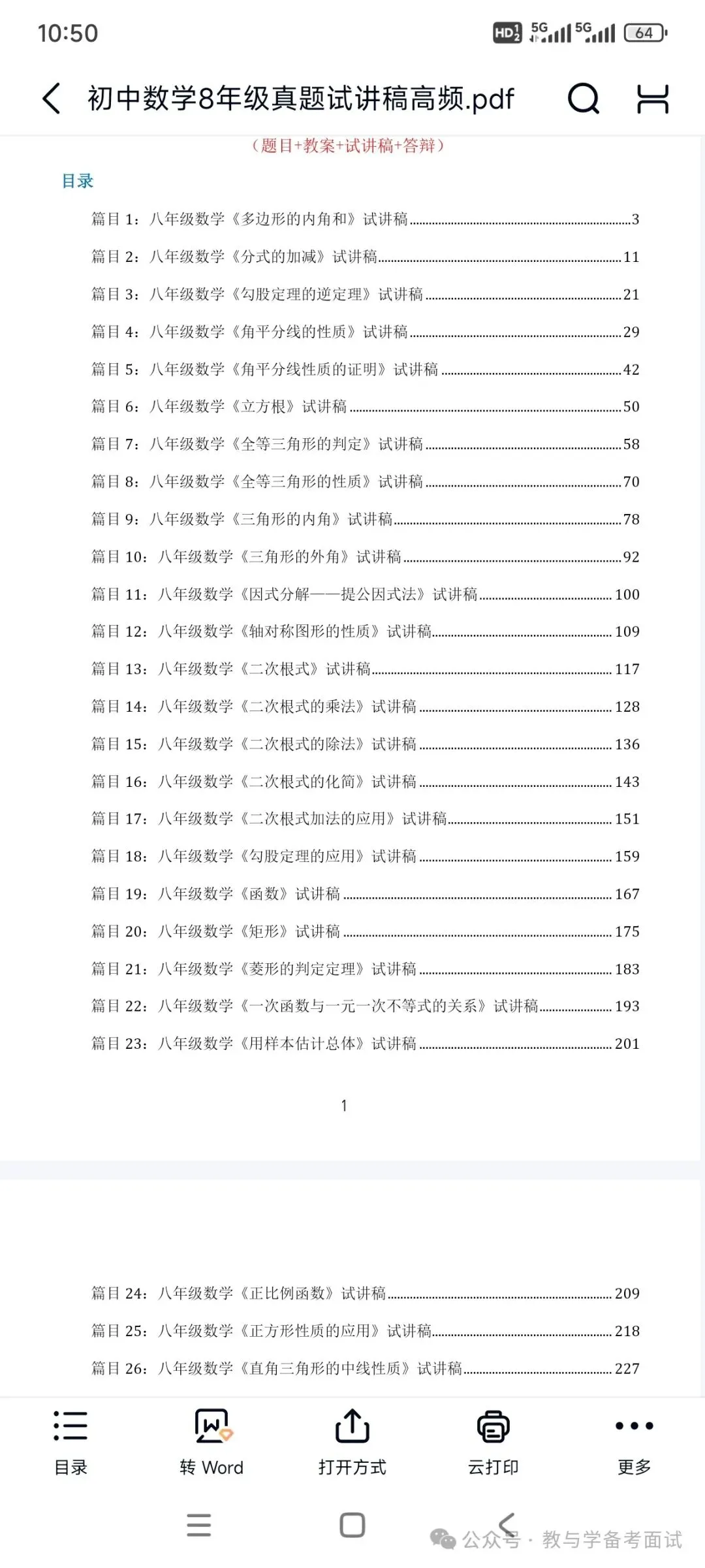 资料包括:初中数学试讲示范课+试讲逐字稿+试讲面试真题+答辩+结构化押题等