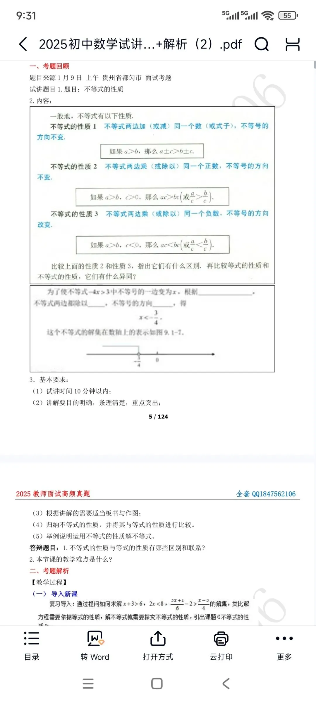 初中数学面试《不等式的性质》题目+教案+试讲稿+答辩