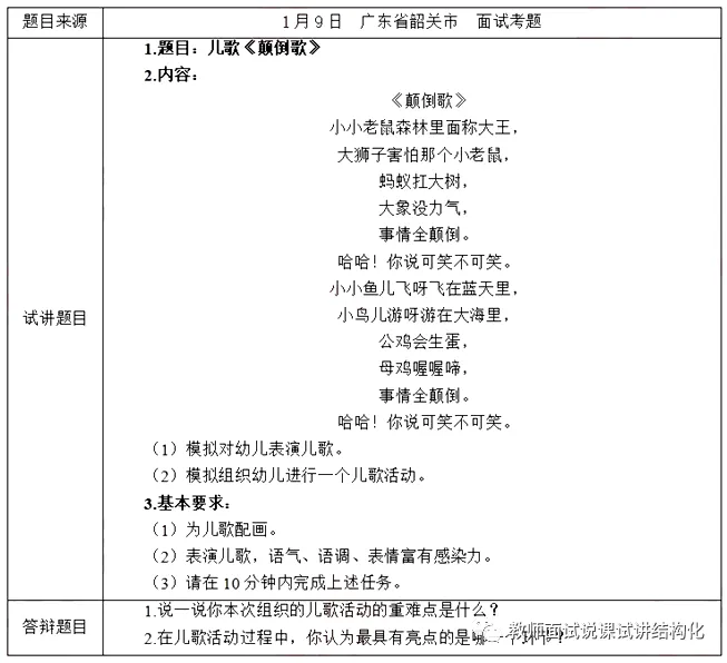 幼儿园面试《颠倒歌》题目+教案+试讲稿+答辩