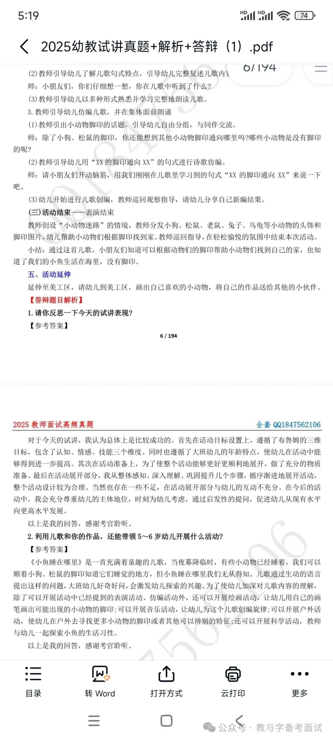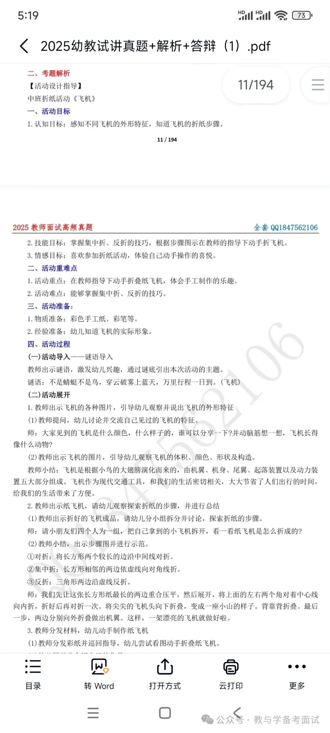 资料包括:试讲示范课+试讲逐字稿+试讲真题+答辩+结构化押题等