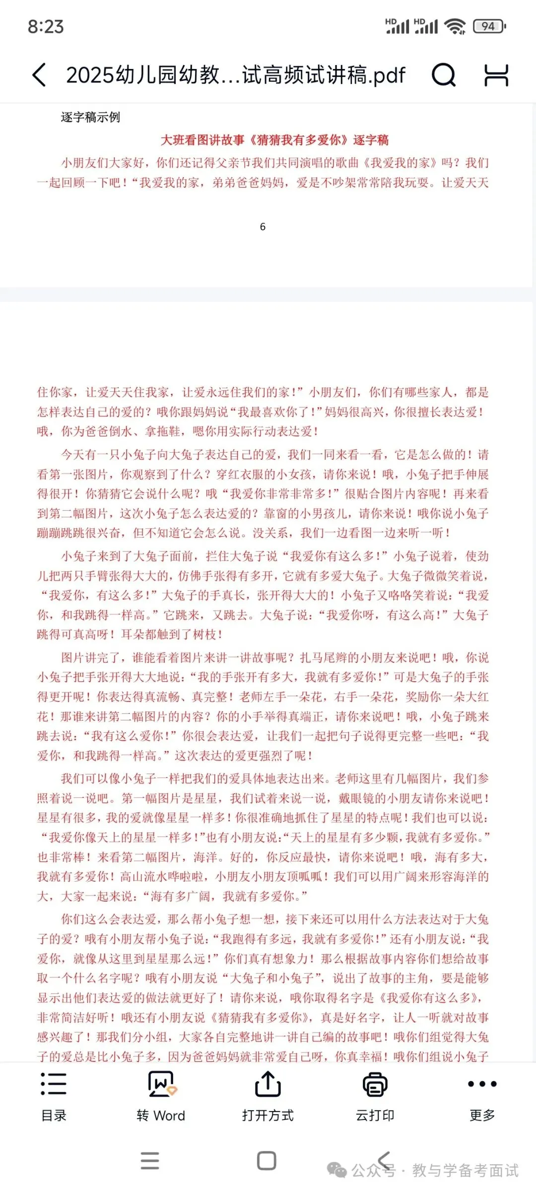 幼儿园《小红帽》试讲逐字稿