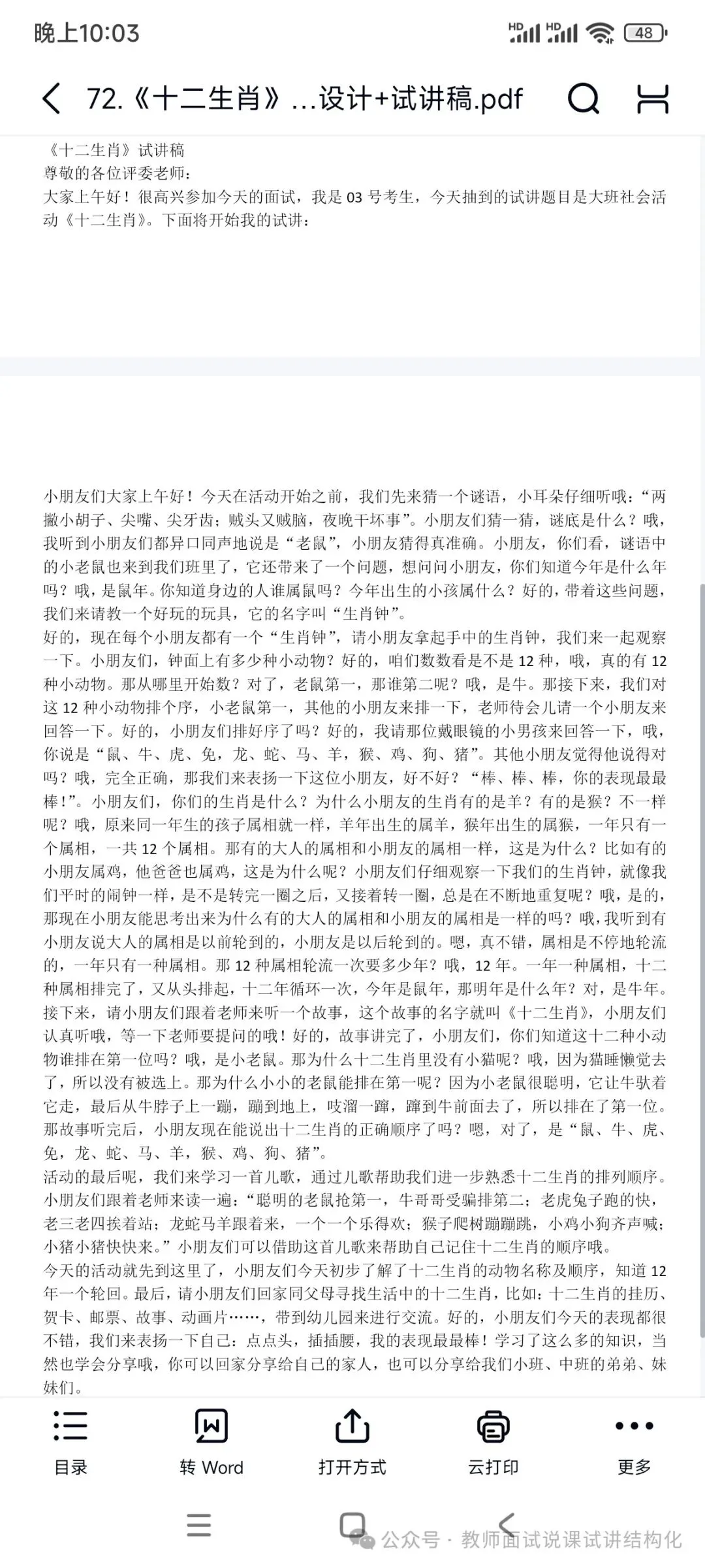 幼儿园《十二生肖》试讲逐字稿
